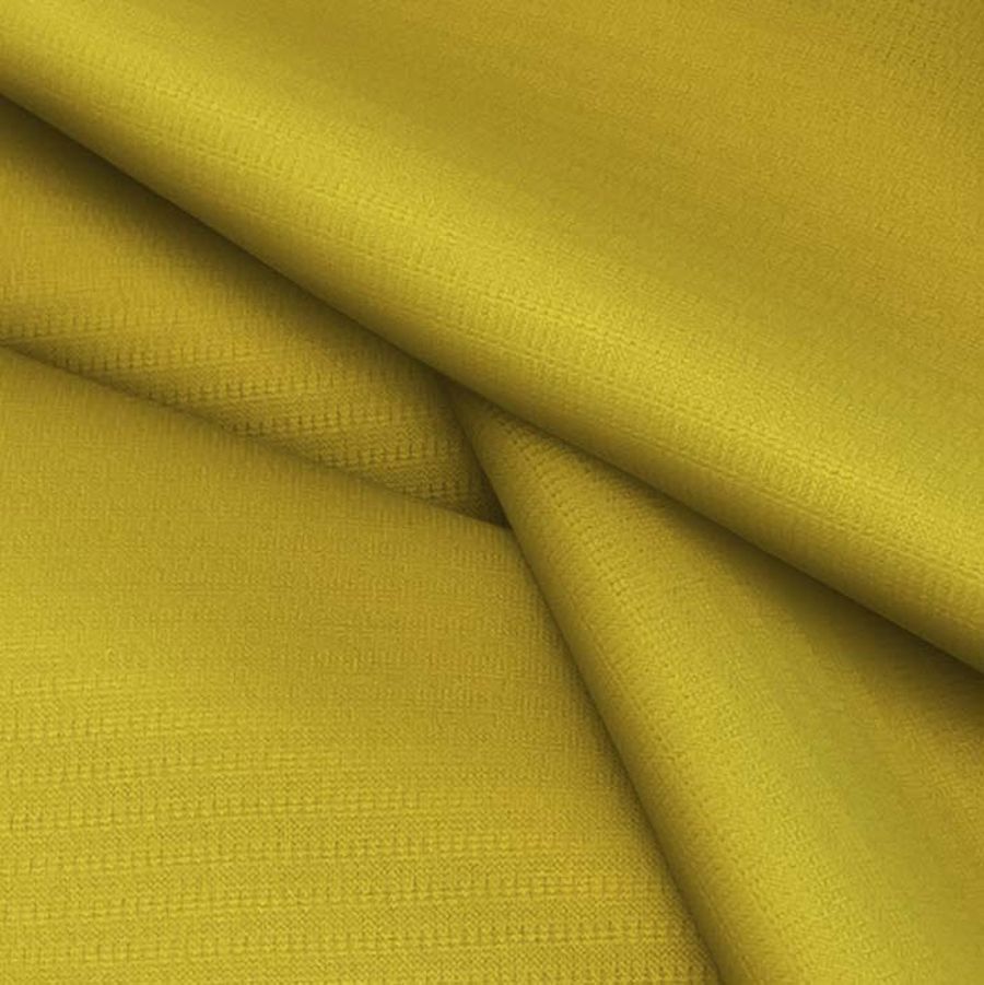 La tela base, Tejido Técnico Transpirable - Fresh, está compuesta por 100% poliéster y tiene un gramaje de 135 gr/m2 con un ancho de 150 cm. El color liso impreso es Amarillo Sahara con un valor de CMYK de 26 32 93 12. Este color secundario es un amarillo intenso y cálido, que combina especialmente bien con tonos tierra como el marrón y el beige, así como con el azul oscuro y el verde oliva.