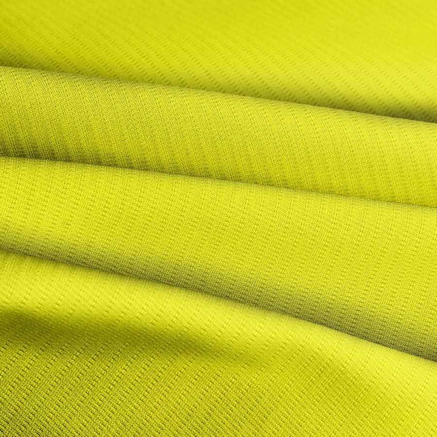 La tela base de este tejido técnico transpirable - Fresh es 100% poliéster, con un gramaje de 135 gr/m2 y un ancho de 150 cm. Su color liso impreso es amarillo sol, con un CMYK de 12 0 93 0. Este color evoca al sol, al calor y a la alegría, siendo ideal para prendas de vestir en temporada estival y para accesorios como pañuelos y gorros. Este color vibrante combina bien con tonos tierra, azul marino y blanco.