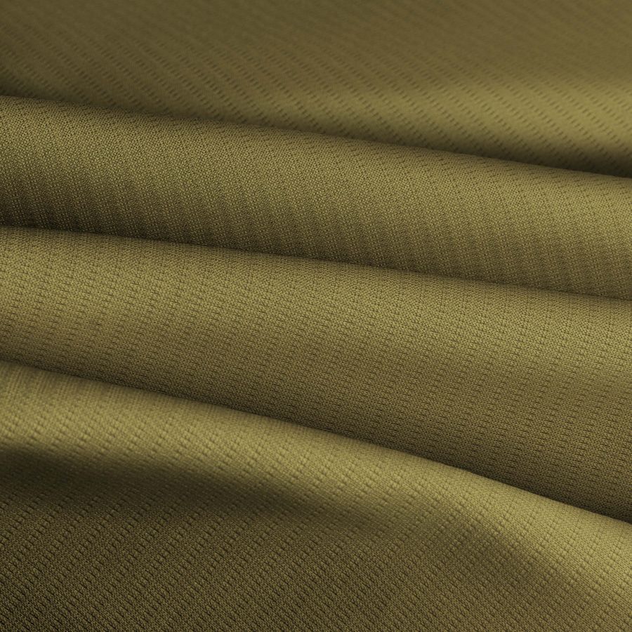 La tela base es el Tejido Técnico Transpirable - Fresh de 100% poliéster, con un gramaje de 135 gr/m2 y una anchura de 150 cm. El color liso impreso es una mezcla de verde y verde amarillo, con un CMYK de 42 39 74 26. Este color evoca la frescura de la naturaleza y puede combinar especialmente bien con tonos terrosos y neutros.