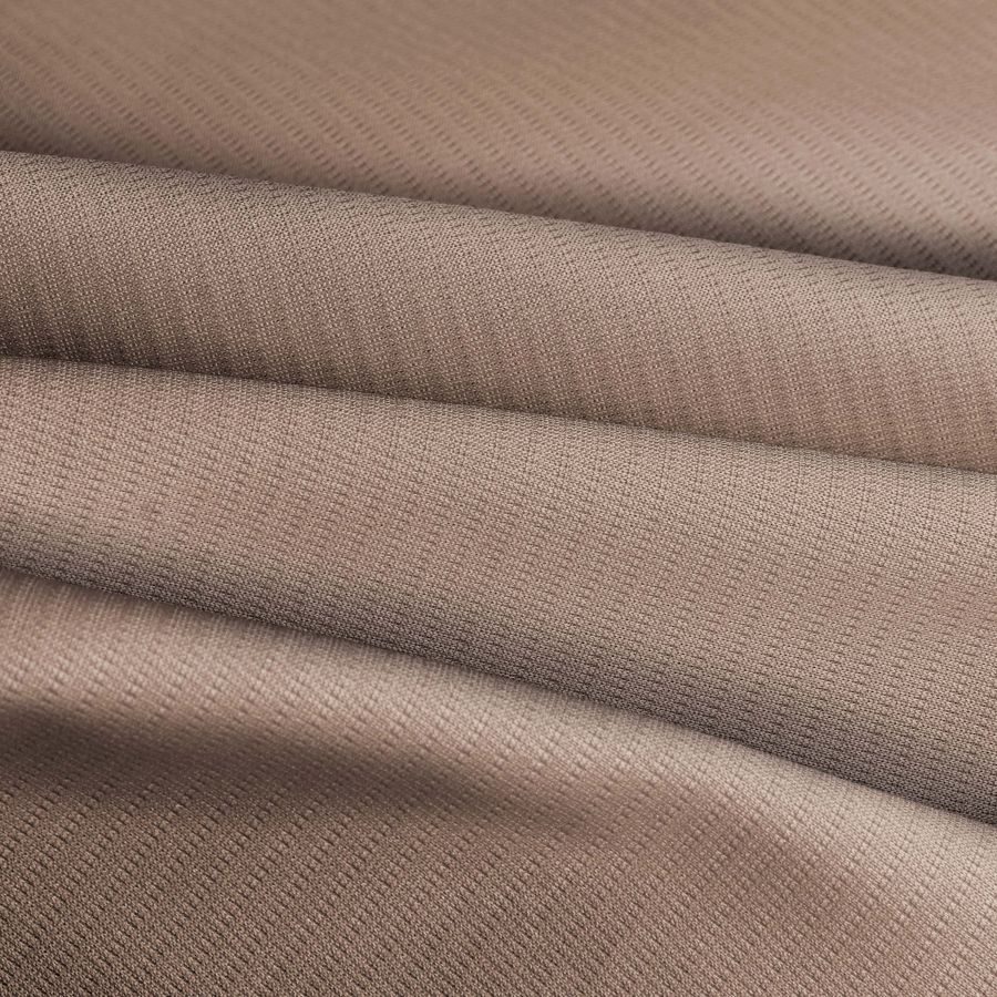 El Tejido Técnico Transpirable - Fresh, de 100% poliéster, tiene un gramaje de 135 gr/m2 y un ancho de tela de 150 cm. Su color liso es Marrón Arcilla, con el siguiente contenido de CMYK: 31 43 48 22. El color Marrón Arcilla se asocia con la tierra, el barro y lo natural, denotando una sensación cálida y acogedora. Este color secundario combina bien con tonos de mayoría neutra, como blanco, gris y negro, así como con colores naturales como verde y amarillo sepia.