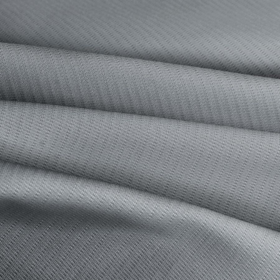 La tela base es el Tejido Técnico Transpirable - Fresh, compuesta por 100% poliéster con un gramaje de 135 gr/m2 y una anchura de 150 cm. Su color liso impreso es de un gris cadete con valores de CMYK de 51 37 35 16. El color secundario simboliza la elegancia, la sofisticación y la estabilidad. Se puede combinar perfectamente con una amplia variedad de colores claros o brillantes, pero especialmente con el blanco y el negro. Es importante mencionar que el tejido está impreso con el color liso a una sola cara por impresión digital textil.