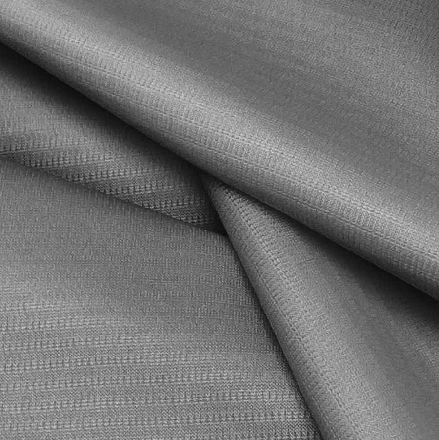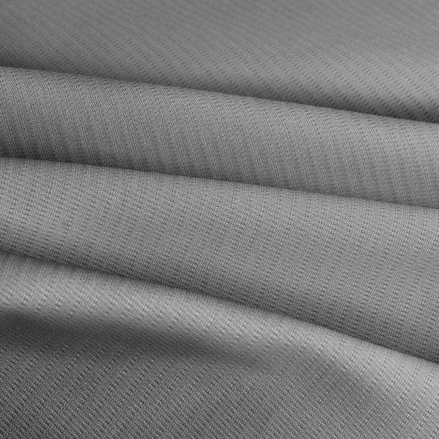 La tela base es Tejido Técnico Transpirable - Fresh, de composición 100% poliéster y un gramaje de 135 gr/m2, con un ancho de 150 cm y una tecnología de impresión por sublimación para colores vivos. El color liso impreso es Gris Trolley, con una combinación de tintas CMYK de 49 39 38 20, que se complementa con tonos claros y oscuros del mismo gris. La tela está impresa a una sola cara por impresión digital textil.