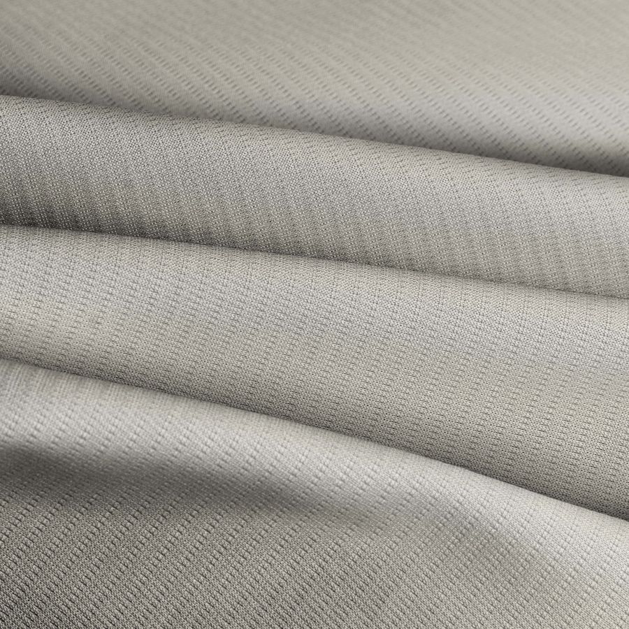 La tela base Tejido Técnico Transpirable - Fresh, con una composición 100% POLIÉSTER y un gramaje de 135 gr/m2, presenta un color liso impreso en Blanco y Latte Cósmico, con un CMYK de 0 2 12 0. Este color secundario, en un tono lechoso y luminoso, se combina particularmente bien con tonos azules y neutros como el gris claro.
