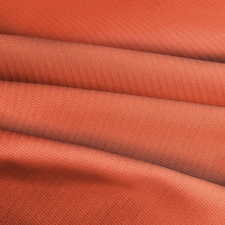 El Tejido Técnico Transpirable - Fresh es un tejido técnico compuesto al 100% de poliéster, con un gramaje de 135 gr/m2 y un ancho de 150 cm. Su color liso impreso es Naranja-Salmón, con CMYK de 0 76 76 0. Este color es una mezcla de naranja brillante con tonos rosados, y se combina particularmente bien con colores neutros como el blanco, gris y beige, así como con colores fuertes y vibrantes como el azul marino o el turquesa.