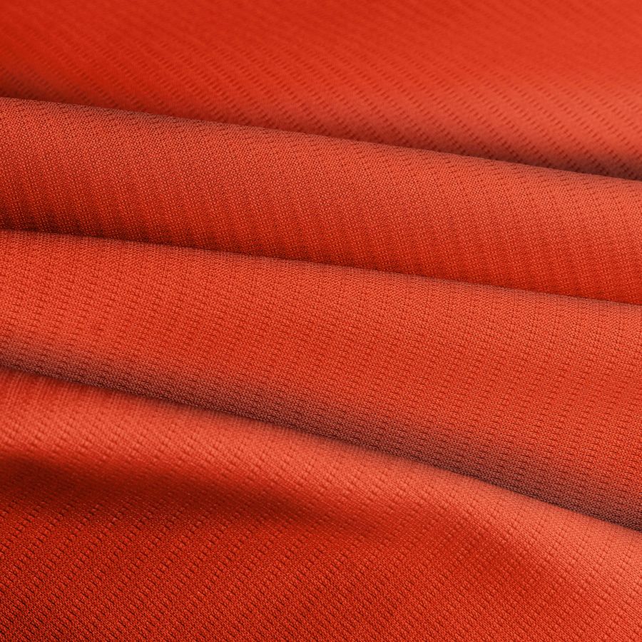 La tela base es el Tejido Técnico Transpirable - Fresh, compuesta por 100% poliéster con un gramaje de 135 gr/m2 y una anchura de 150 cm. El color liso impreso es un Rojo Bermellón de Holanda, con el CMYK 0 91 98 0. Este color simboliza la pasión, la fuerza y la energía, complementado perfectamente con tonos como el blanco, negro, gris y tonalidades de azul.