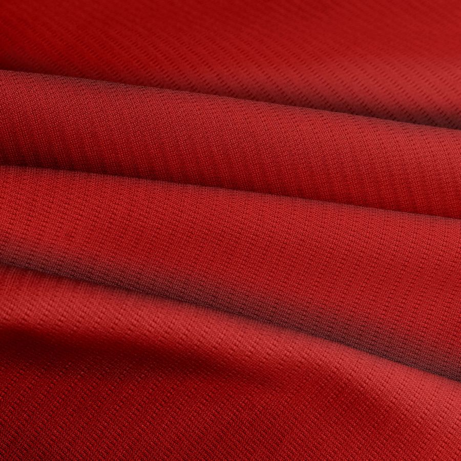 La tela base de este tejido técnico es 100% poliéster, con un gramaje de 135 gr/m2 y un ancho de 150 cm. Su nombre es Tejido Técnico Transpirable - Fresh, y su color liso impreso es un rojo cardenalicio con un CMYK de 25 100 100 26. Este tono de rojo tiene un carácter intenso y vibrante, que evoca la pasión y el entusiasmo.