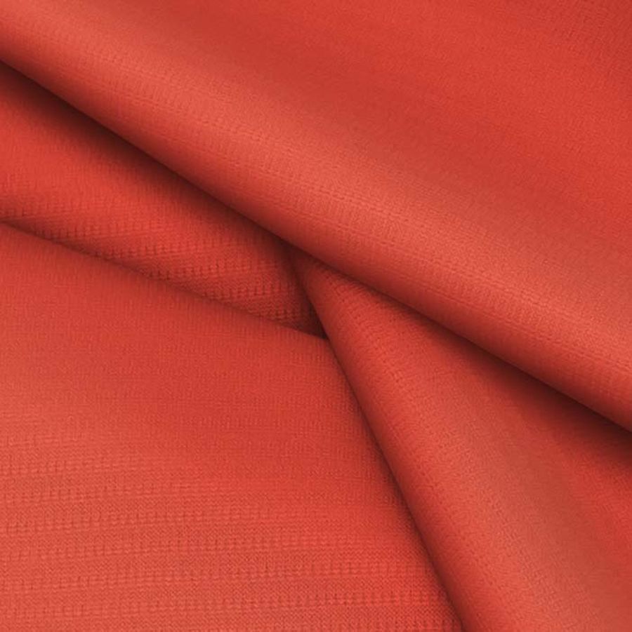 El Tejido Técnico Transpirable - Fresh es una tela técnica de poliéster con un gramaje de 135 gr/m2, presenta una textura suave y elástica, y una gran transpirabilidad que asegura una adecuada evacuación del sudor. El color liso impreso de la tela es Rojo Cinabrio, que se obtiene a partir de la siguiente combinación de tintas: Cyan: 3, Magenta: 85, Yellow: 80, Black: 0, con un valor de CMYK de 3 85 80 0. Este color rojo intenso se combina perfectamente con tonos mostaza, dorados y verdes, ofreciendo una amplia gama de posibilidades creativas.