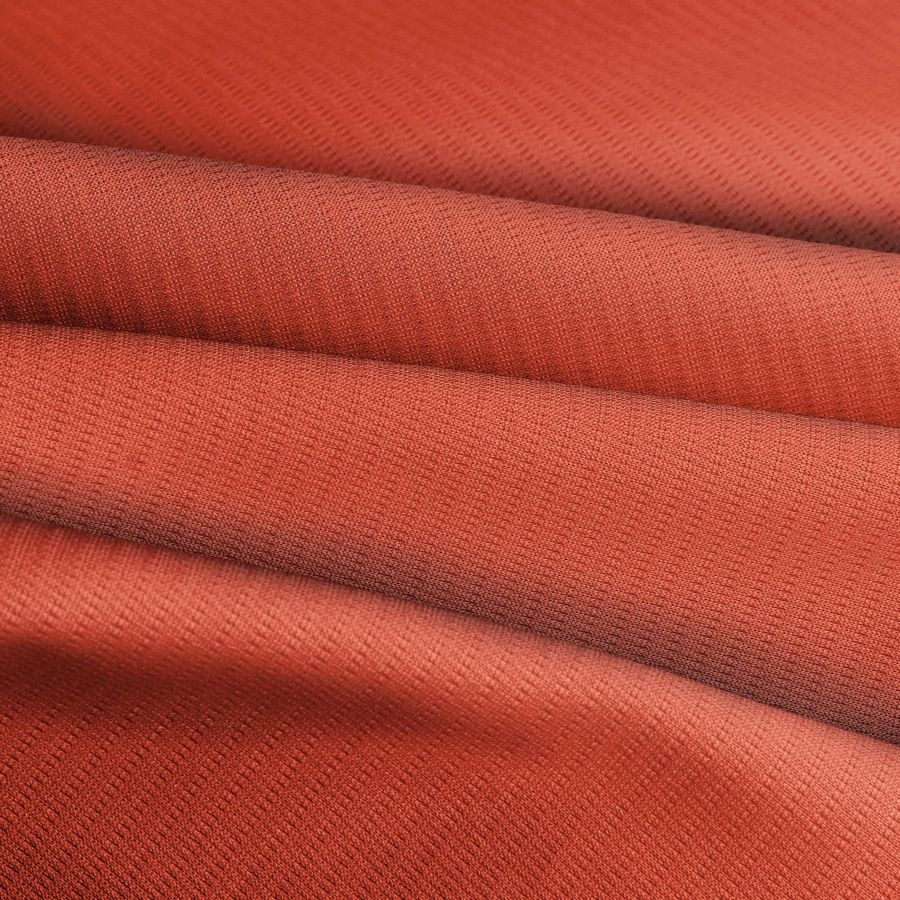 La tela base de este tejido es el Tejido Técnico Transpirable - Fresh, compuesto por 100% poliéster y con un gramaje de 135 gr/m2 y un ancho de 150 cm. El color liso impreso es Rojo Hematita, con un contenido de tinta Cyan de 11, Magenta de 84, Yellow de 84 y Black de 2, lo que indica una fuerte presencia de tonos rojos y amarillos con un pequeño toque de negro, lo que aporta profundidad y oscuridad al color en general. Este color, por su tonalidad oscura y ligeramente marrón, combina muy bien con otros tonos terrosos, como el verde oliva o el marrón chocolate.