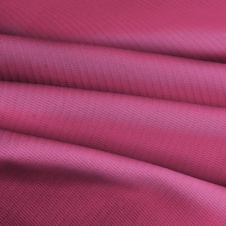 Este tejido, el Tejido Técnico Transpirable-Fresh, tiene una composición de 100% poliéster con un gramaje de 135 gr/m2 y un ancho de 150 cm. El color liso impreso es Rojo Fresa con valores de 0 en cian, 77 en magenta, 15 en amarillo y 0 en negro de acuerdo al CMYK. El color secundario presente en este tejido es un rojo intenso, brillante y vibrante que simboliza la pasión, la energía y la determinación. Este color va muy bien con tonos neutros como el blanco y el negro, así como con tonos azules, verde oscuro y morado.