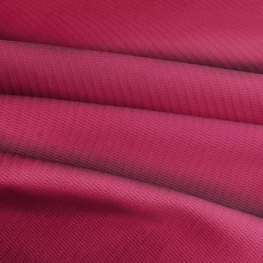 El Tejido Técnico Transpirable - Fresh de 100% poliéster destaca por su acabado transpirable y tacto elástico. El color liso impreso en el tejido es rojo-granate, cuyo CMYK es 23-98-52-17. Este color secundario destaca por su intensidad y fuerza, que puede combinarse con tonos neutros como el blanco y el negro, así como con tonos más cálidos como el naranja y el amarillo.