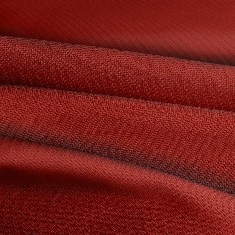 La tela base de esta prenda es el Tejido Técnico Transpirable - Fresh, con una composición 100% de poliéster y un gramaje de 135 gr/m2. El color liso impreso es un Granero Rojo, el cual se obtiene mediante una combinación de tinta Cyan (30), Magenta (100), Yellow (100) y Black (42), con un porcentaje en CMYK de 30 100 100 42. Este color secundario se describe como un tono rojo quemado, que combina bien con tonos tierra y neutros como beige y blanco.