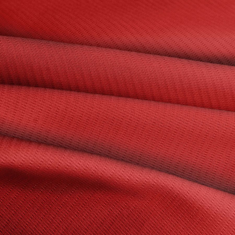 El Tejido Técnico Transpirable - Fresh de 100% poliéster presenta un color liso impreso en Rojo Cornell, que se compone de una mezcla de tinta cian, magenta, amarilla y negra en proporciones de 20, 99, 96, 12 respectivamente, con un CMYK de 20 99 96 12. Este color representa la pasión, el amor y la energía, perfecto para prendas de vestir y accesorios con un toque vibrante y ardiente. El Rojo Cornell es una variante de rojo intenso, que combina perfectamente con otros colores cálidos como el naranja y el amarillo, así como con el negro y el blanco para contrastar y resaltar su brillo.
