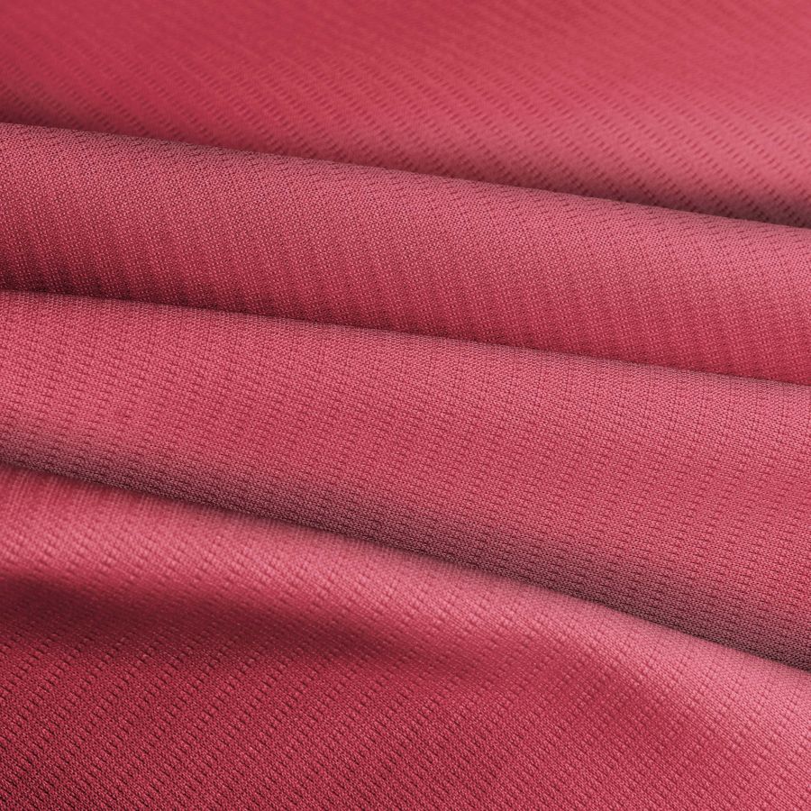 El tejido base es el Tejido Técnico Transpirable - Fresh, compuesto por 100% poliéster, con un gramaje de 135 gr/m2 y ancho de 150 cm. El color liso impreso es rojo ladrillo,con una combinación CMYK de 15 85 55 4. Este color secundario representa la pasión y la fuerza, evocando la vitalidad y la energía. Se combina perfectamente con bronce oscuro, esmeralda y beige, creando un contraste entre los tonos cálidos y fríos.