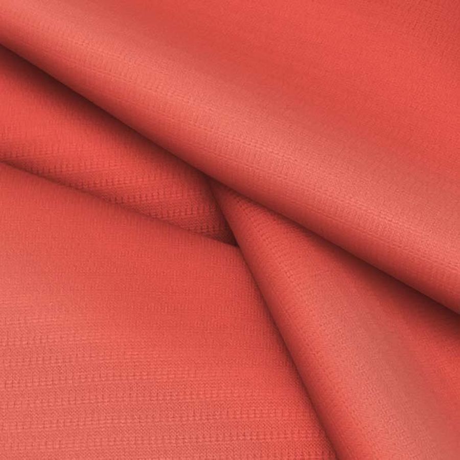 El tejido técnico transpirable Fresh, compuesto por un 100% de poliéster, tiene un gramaje de 135 gr/m2 y un ancho de 150 cm. El color liso impreso es rojo anaranjado (CMYK: 0 79 64 0), que destaca por su intensidad y calidez. Este tono es un color secundario, creado a partir de la mezcla de magenta y amarillo, lo que le aporta un carácter vibrante y energético que lo emparenta con la vitalidad y la pasión. Además, este color combina bien con tonos neutros como el negro o el gris, así como con tonos más cálidos como el dorado o el cobre.