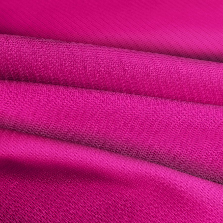 El Tejido Técnico Transpirable - Fresh es una tela de poliéster de 135 gr/m2 de gramaje y 150 cm de ancho. Su color liso impreso es rojo y púrpura con un CMYK de 2 98 10 0. El color púrpura se define por mezcla de tonos rojos y azules, lo que representa la fuerza y pasión del rojo junto con la tranquilidad y estabilidad del azul. Esta combinación simboliza el equilibrio perfecto entre la emoción y la paz. El color púrpura se combina especialmente bien con tonos crema, dorados y amarillos suaves para crear un contraste suave y delicado.