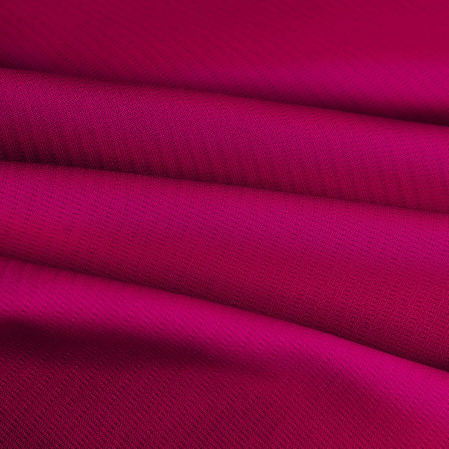 La tela base es Tejido Técnico Transpirable - Fresh, compuesta por 100% poliéster de 135 gr/m2 en 150 cm de ancho. El color liso impreso es Rojo Rubine, con un CMYK de 11 100 42 3. Un rojo profundo y vibrante, que transmite pasión y energía. Combina bien con negro, gris, verde y amarillo. El tejido está impreso con una técnica de impresión digital textil, en una sola cara. Ofrece un acabado transpirable, una textura táctil y elástica. La tela es ideal para la fabricación de accesorios de moda, ropa deportiva y camisetas tanto para mujeres, hombres como niños. Sus aplicaciones incluyen coleteros y scrunchies, además de prestar excelentes resultados en camisetas deportivas. Se recomienda no blanquear y planchar a temperatura fría. El tejido es impreso mediante la tecnología de sublimación, que produce imágenes duraderas y de gran calidad.
