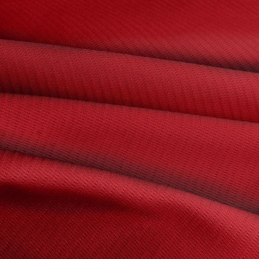 La tela base es el Tejido Técnico Transpirable - Fresh, compuesta por 100% poliéster con un gramaje de 135 gr/m2 y una anchura de 150 cm. El color liso impreso en esta tela es de color Rojo Sangría, con una combinación de colores Cyan de un 26%, Magenta de un 100%, Yellow de un 100% y Black de un 30% (26-100-100-30 en CMYK). Este rojo sangría simboliza la pasión y la energía, y combina perfectamente con otros colores como el blanco, el dorado y el rosa.