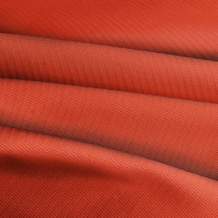 La tela base, Tejido Técnico Transpirable - Fresh, está compuesta al 100% de poliéster con un gramaje de 135 gr/m2 y un ancho de 150 cm. El color liso impreso en esta tela es Rojo Vermilion, cuyo CMYK es 7 89 96 1. Este tono se caracteriza por ser un rojo brillante y vibrante con matices anaranjados, que simboliza la pasión y la energía. Complementa perfectamente con tonos neutros como el blanco y el negro, así como con colores más atrevidos como el turquesa y el verde bosque.