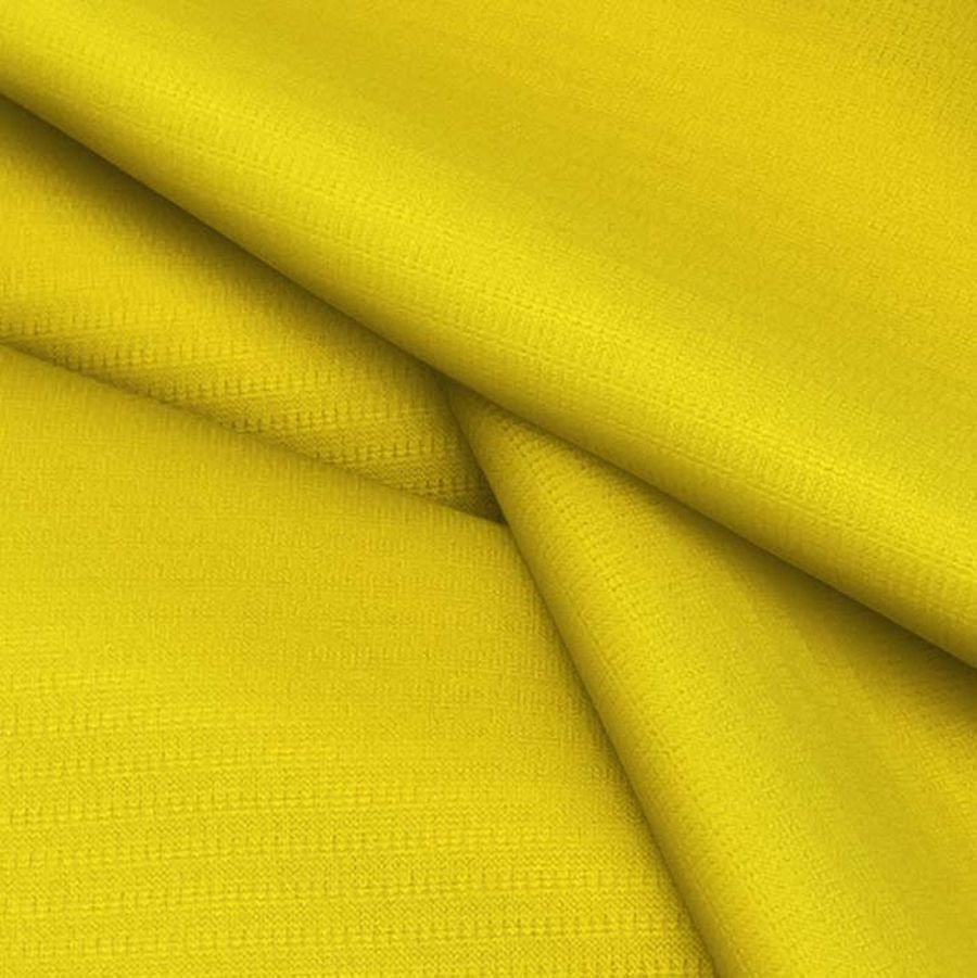La tela base es el Tejido Técnico Transpirable - Fresh, un tejido técnico compuesto 100% de poliéster con un gramaje de 135 gr/m2 y un ancho de 150 cm. El color liso impreso es amarillo huevo con un valor CMYK de 0 16 91 0. Este color es suave y dulce, evocando la juventud y la alegría. Combina perfectamente con blanco, gris y azul claro, creando un ambiente fresco y brillante.