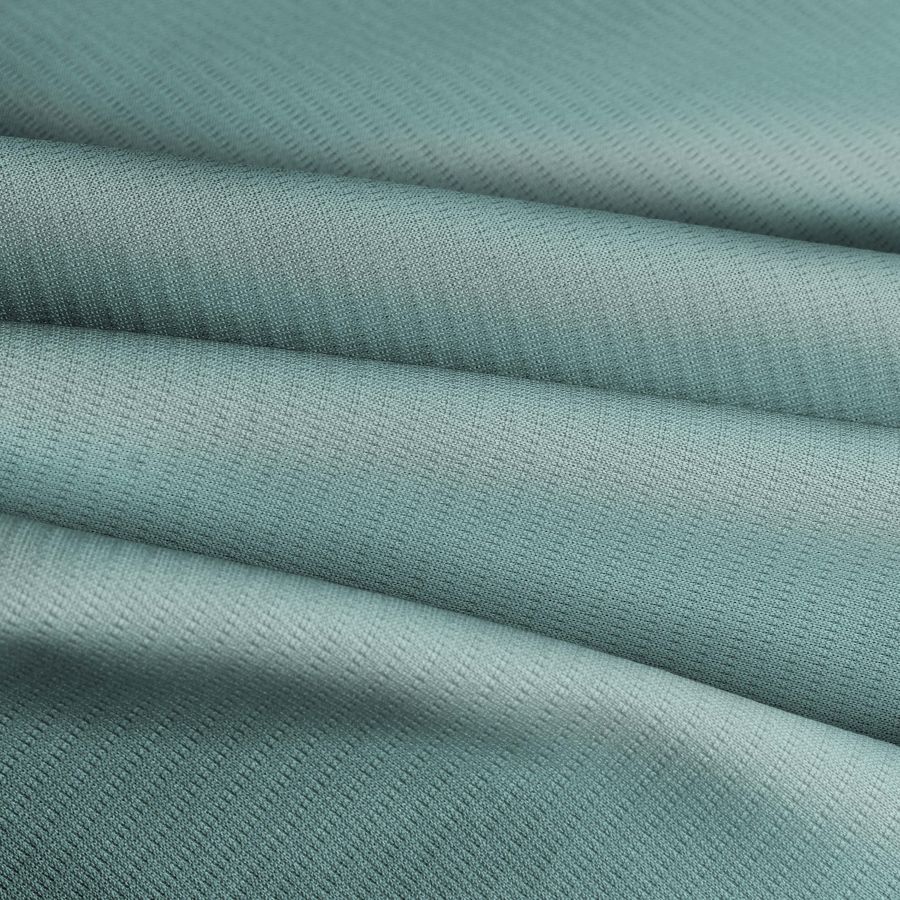La tela base es el Tejido Técnico Transpirable - Fresh, con una composición 100% POLIÉSTER y un gramaje de 135 gr/m2. El color liso impreso es un hermoso verde aguamarina claro, que se obtiene a través de la tecnología de impresión de sublimación, con un CMYK de 42 0 22 0, indicando una alta presencia de cian y un toque de amarillo. Este color encuentra una combinación particularmente armónica con los tonos grises, neutros y marrones, y es ampliamente utilizado para crear prendas deportivas, accesorios y artículos de moda para mujeres, hombres y niños.