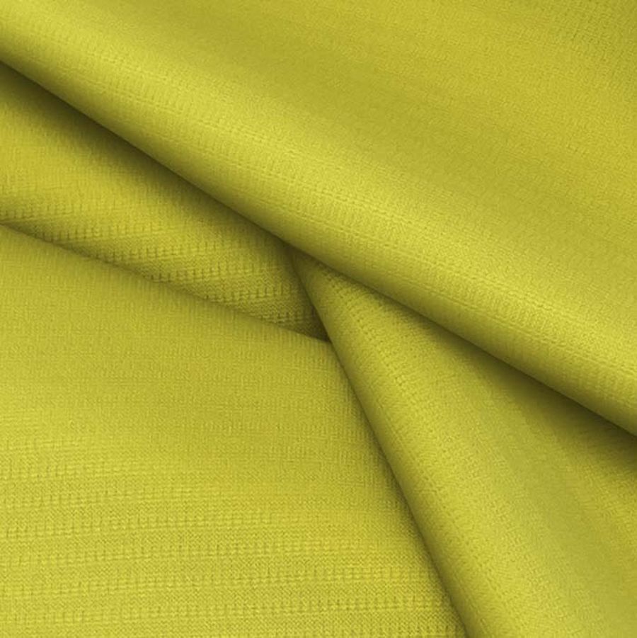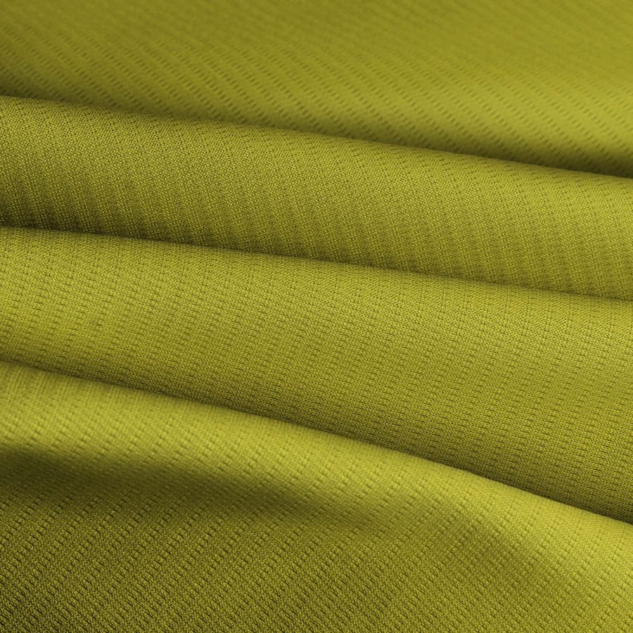 La tela base es el Tejido Técnico Transpirable - Fresh, de 100% poliéster, con un gramaje de 135 gr/m2 y un ancho de 150 cm. El color liso impreso es Verde Cartuja, con un CMYK de 28 16 89 2, indicando una alta cantidad de tinta amarilla que le otorga su tonalidad verdosa. Se combina especialmente bien con tonos grises y marrones oscuros.