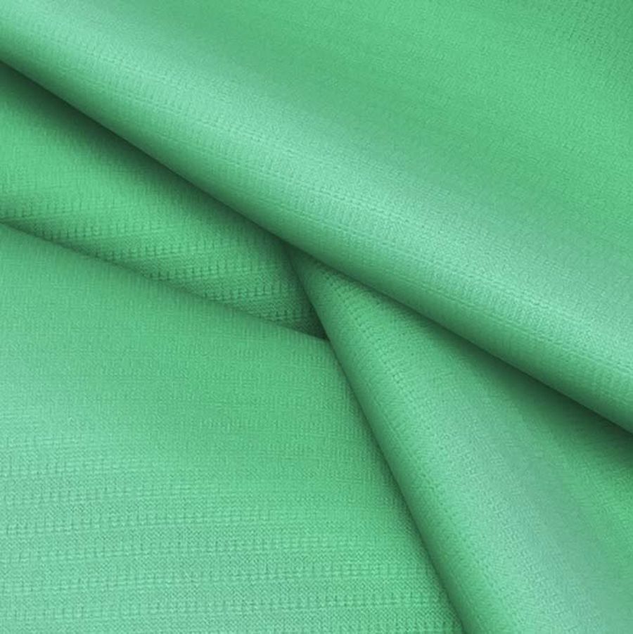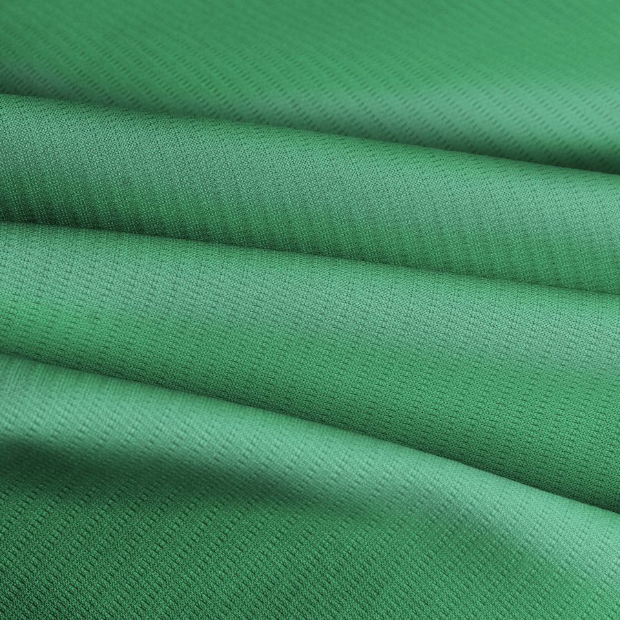 La tela base de este tejido es un tejido técnico transpirable conteniendo un 100% de poliéster con un gramaje de 135 gr/m2 y un ancho de la tela de 150 cm. El color liso impreso en este tejido es verde esmeralda claro, compuesto por las tintas cian y amarilla en partes iguales (61) y sin tonalidades en negro o magenta representadas por un CMYK de 61 0 61 0. Este color simboliza la naturaleza con su tonalidad brillante y fresca. Combina con una amplia variedad de colores, incluyendo tonos beige, negro, blanco, gris y tonos tierra que permiten crear una armonía visual elegante y equilibrada. Este tejido está impreso a una sola cara mediante impresión digital textil.
