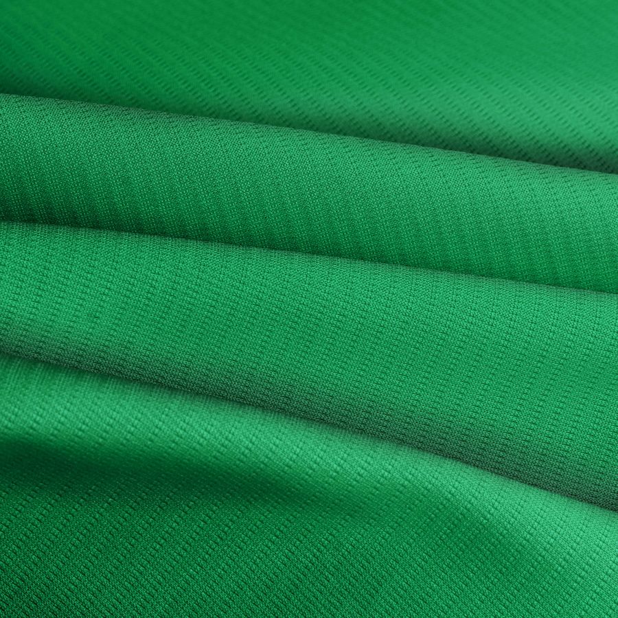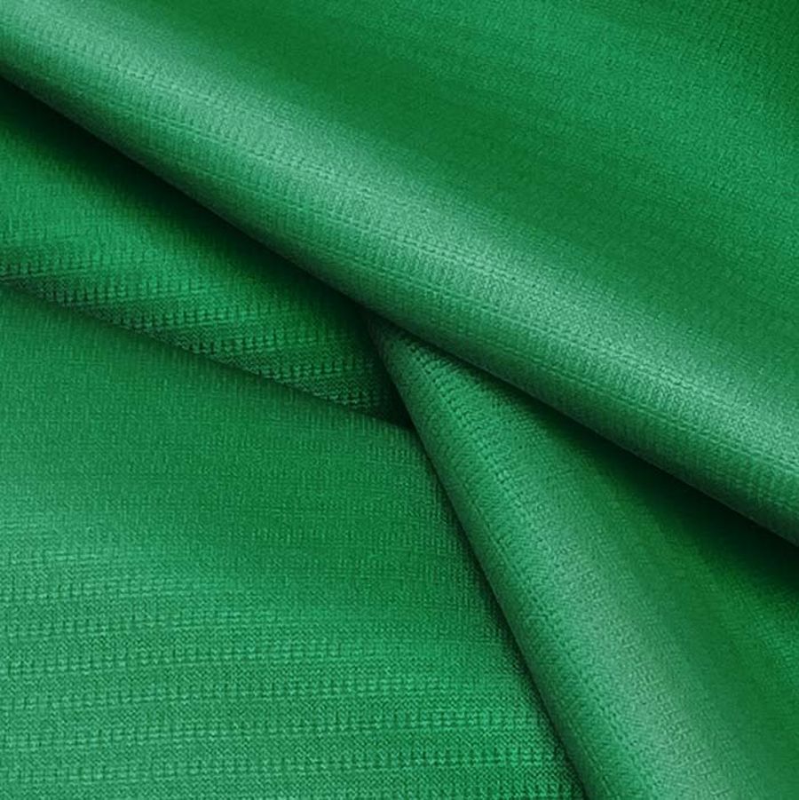 La tela base es el Tejido Técnico Transpirable - Fresh de 100% POLIÉSTER, con un gramaje de 135 gr/m2 y un ancho de 150 cm. El color impreso es un verde intenso, con un CMYK de 85 19 94 5, lo que proporciona un matiz de verde hoja vibrante. Este color combina particularmente bien con tonos azules y rojos.
