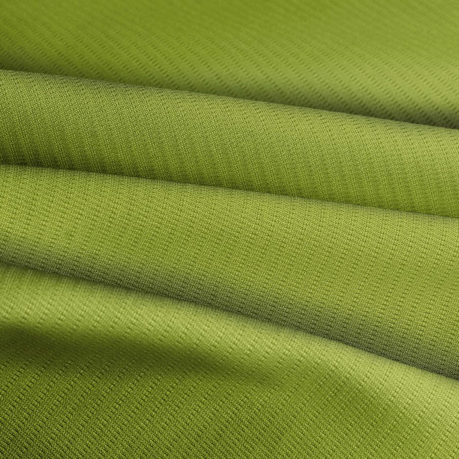 La tela base es el Tejido Técnico Transpirable - Fresh, compuesta al 100% por poliéster y con un gramaje de 135 gr/m2. El color liso impreso es verde mate con un CMYK de 55 26 100 10, lo que nos indica una tonalidad verde oscura y mate con un aspecto natural y sin brillo.