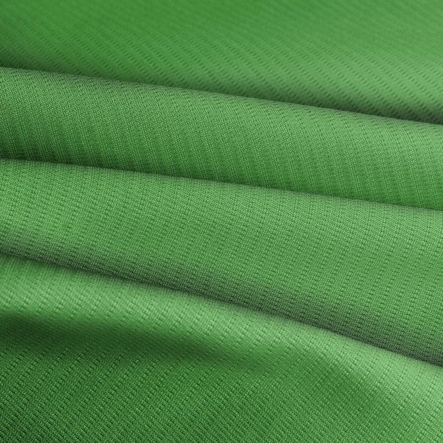 La tela base es el Tejido Técnico Transpirable - Fresh, con una composición de 100% poliéster y un gramaje de 135 gr/m2. El color liso impreso es Verde Mayo, y su CMYK es 74 21 92 5. Este color proporciona una sensación fresca y alegre, aportando vitalidad y energía. El color secundario, el amarillo, está presente en su CMYK con un 92%, lo que hace que el verde tenga matices más amarillos y brillantes. Además, al ser un color complementario al morado, puede combinarse perfectamente con prendas que den un contraste de color potente y atrevido.