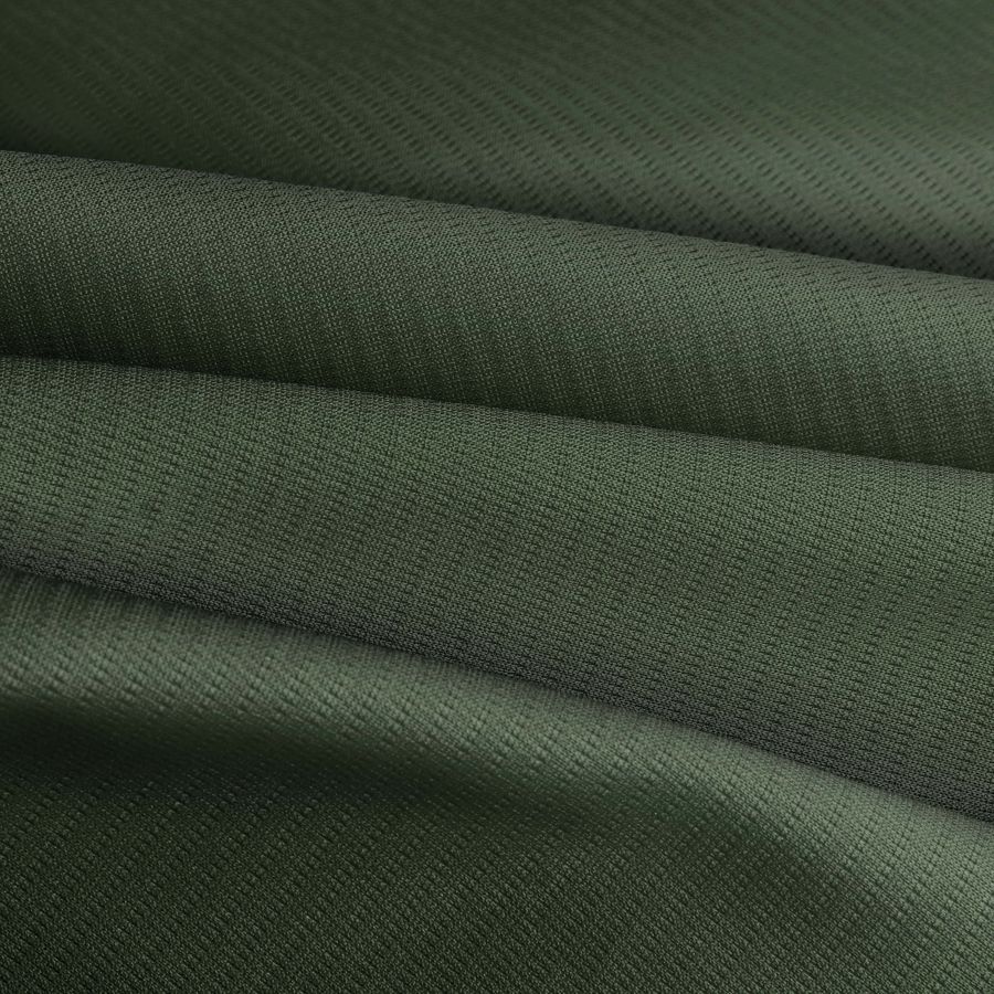 La tela base es el Tejido Técnico Transpirable - Fresh, de composición 100% POLIÉSTER, con un gramaje de 135 gr/m2 y un ancho de 150 cm. El color liso impreso es Verde Monte con los valores CMYK de 75 53 80 64. Este tono de verde se caracteriza por ser fresco y natural, con un toque de tranquilidad que lo hace perfecto para prendas deportivas y accesorios para el cabello. Combina muy bien con tonalidades neutras como negro, blanco y gris, así como con tonos tierra y amarillos.