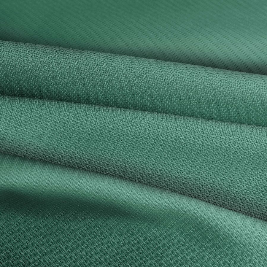 La tela base del tejido técnico transpirable - Fresh es de 100% poliéster con un gramaje de 135 gr/m2 y un ancho de 150 cm. El color liso impreso en esta tela es verde pátina, con una base de 76% Cyan, 33% Magenta, 63% Yellow y 20% Black (CMYK: 76 33 63 20). Este color secundario se caracteriza por una tonalidad verde-azulada llena de frescura y vitalidad. Es un color que se asocia con la naturaleza y la tranquilidad, ideal para la ropa deportiva o para piezas de moda casual y atractiva.