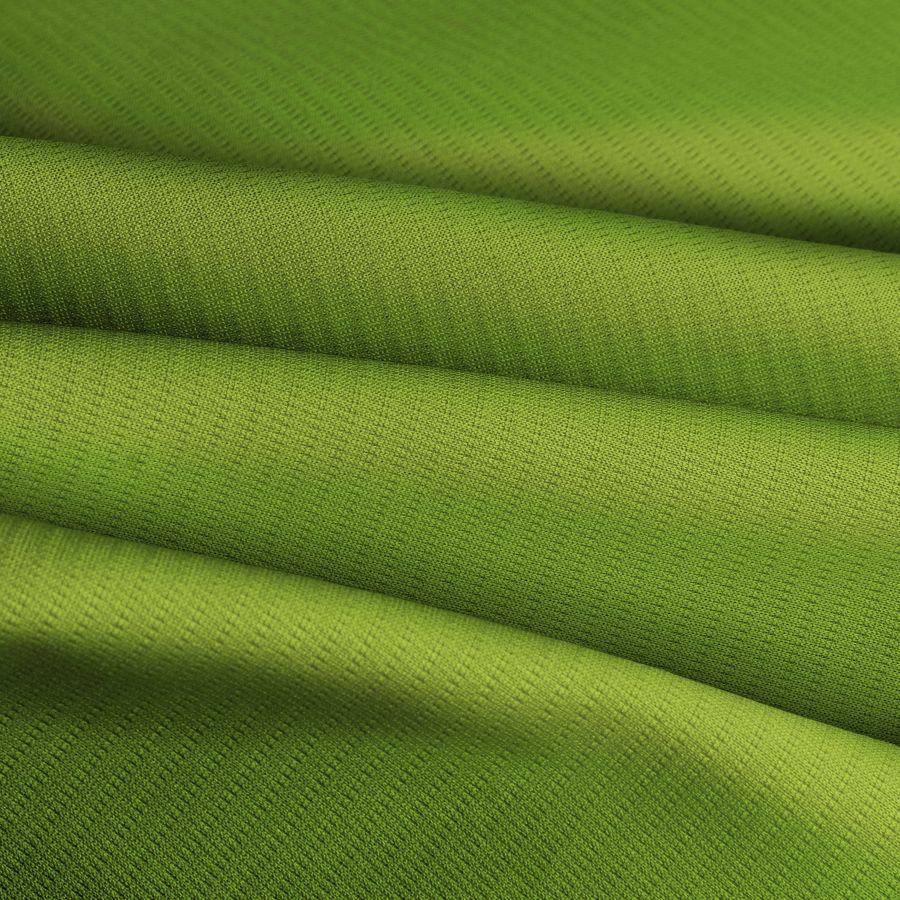 La tela base de este tejido es el Tejido Técnico Transpirable Fresh, compuesto por 100% poliéster y con un gramaje de 135 gr/m2. Su ancho es de 150 cm y su color liso impreso es un verde primitivo con un CMYK de 55 5 94 0. Este color se caracteriza por ser vibrante y transmite energía y vitalidad. El color verde es un color secundario que se forma a partir de la mezcla de los colores primarios amarillo y cian. En combinación con otros colores, el verde se ajusta a los tonos cálidos y frescos, como el naranja, el amarillo, el marrón, el gris, el blanco, el negro y el azul.