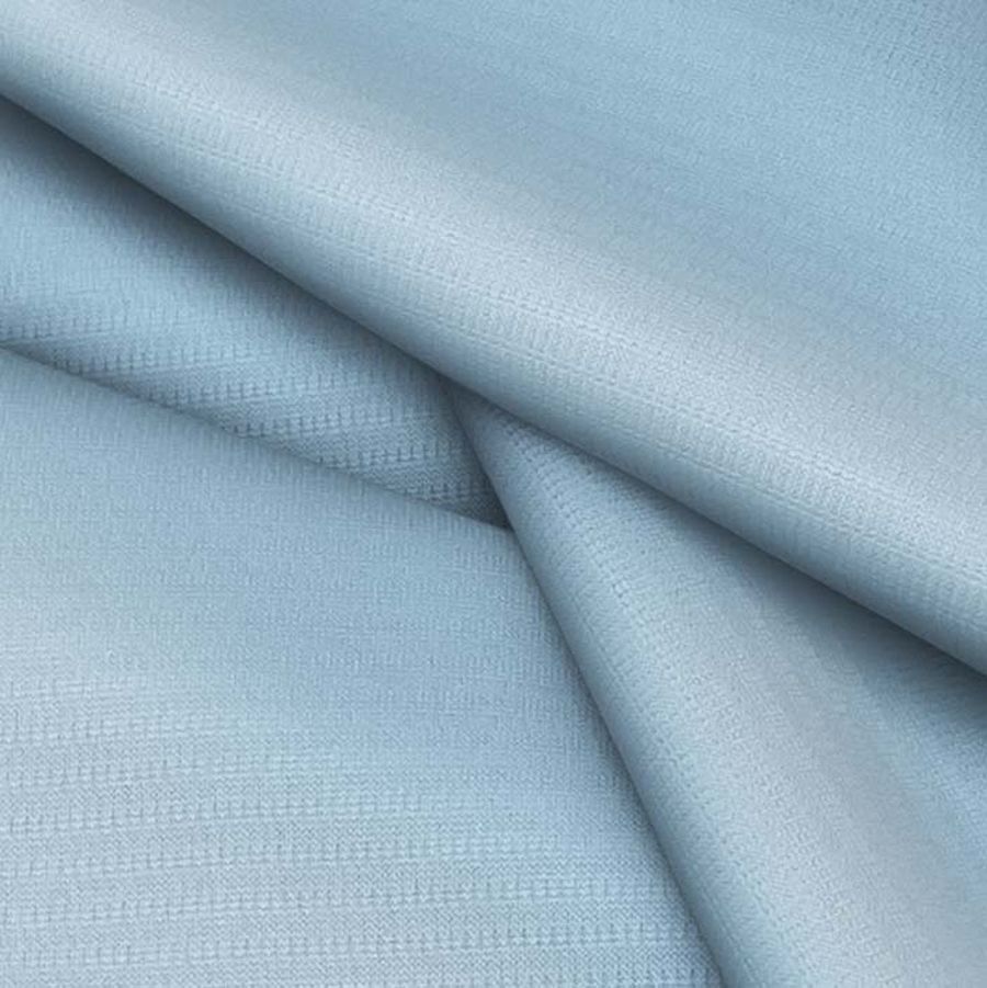 La tela base es el Tejido Técnico Transpirable - Fresh, compuesta en un 100% de poliéster con un gramaje de 135 gr/m2 y un ancho de 150 cm. El color liso impreso es el Angel Azul, cuyo CMYK es 43 13 7 0, con una cantidad de tinta cyan del 43, de magenta del 13, de yellow del 7 y sin tinta negra. Este tono se describe como un azul pastel suave y elegante que recuerda a la figura celestial del ángel. Este color secundario se combina especialmente bien con grises brillantes, blancos y tonos azules similares a los del cielo.