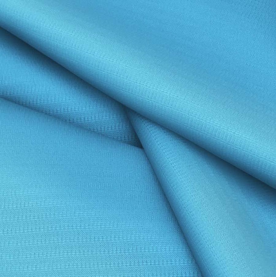 La tela base de esta pieza es el Tejido Técnico Transpirable - Fresh, una tela compuesta al 100% por poliéster con un gramaje de 135 gr/m2 y una anchura de 150 cm. Su color liso impreso es de un suave tono Azul Bebé, el cual se obtiene a través de una combinación de tinta Cyan y Magenta, sin utilizar el color amarillo ni negro, dando como resultado un CMYK de 64 15 0 0. Este color transmite calidez y suavidad, por lo que es ideal para prendas infantiles, así como para piezas con connotaciones frescas y agradables. Combina muy bien con tonos pastel y también es un buen acompañante de colores más fuertes, como el rojo, el turquesa o el amarillo.