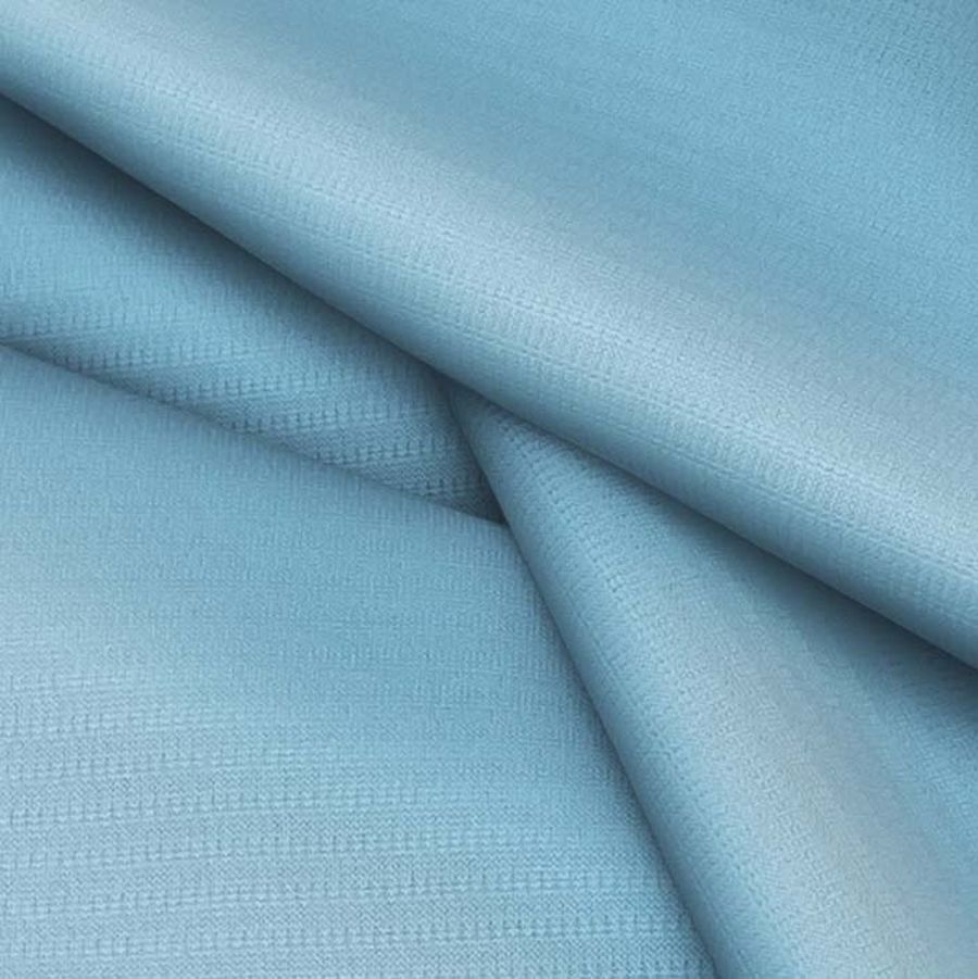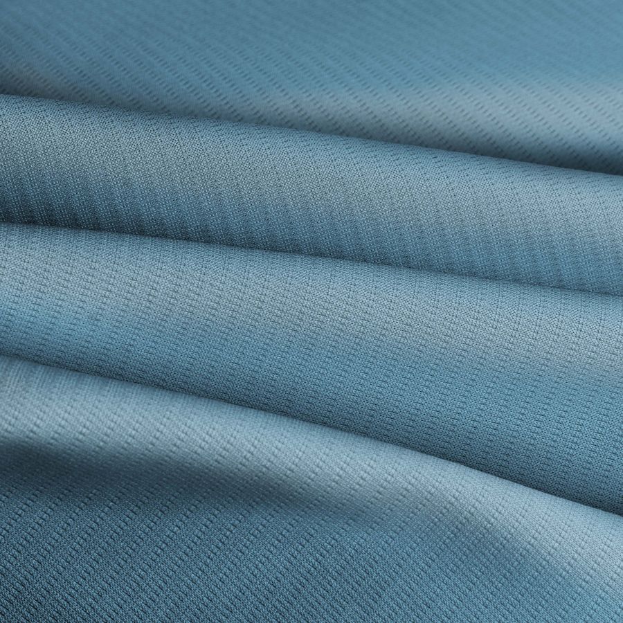 La tela base es el Tejido Técnico Transpirable - Fresh de composición 100% poliéster con un gramaje de 135 gr/m2 y un ancho de tela de 150 cm. El color liso impreso es de un azul Curaçao con un CMYK de 54 15 10 0. Este color secundario simboliza la serenidad, la armonía y la tranquilidad. Combina muy bien con otros colores como el blanco, el gris y el verde, creando un ambiente fresco y natural.