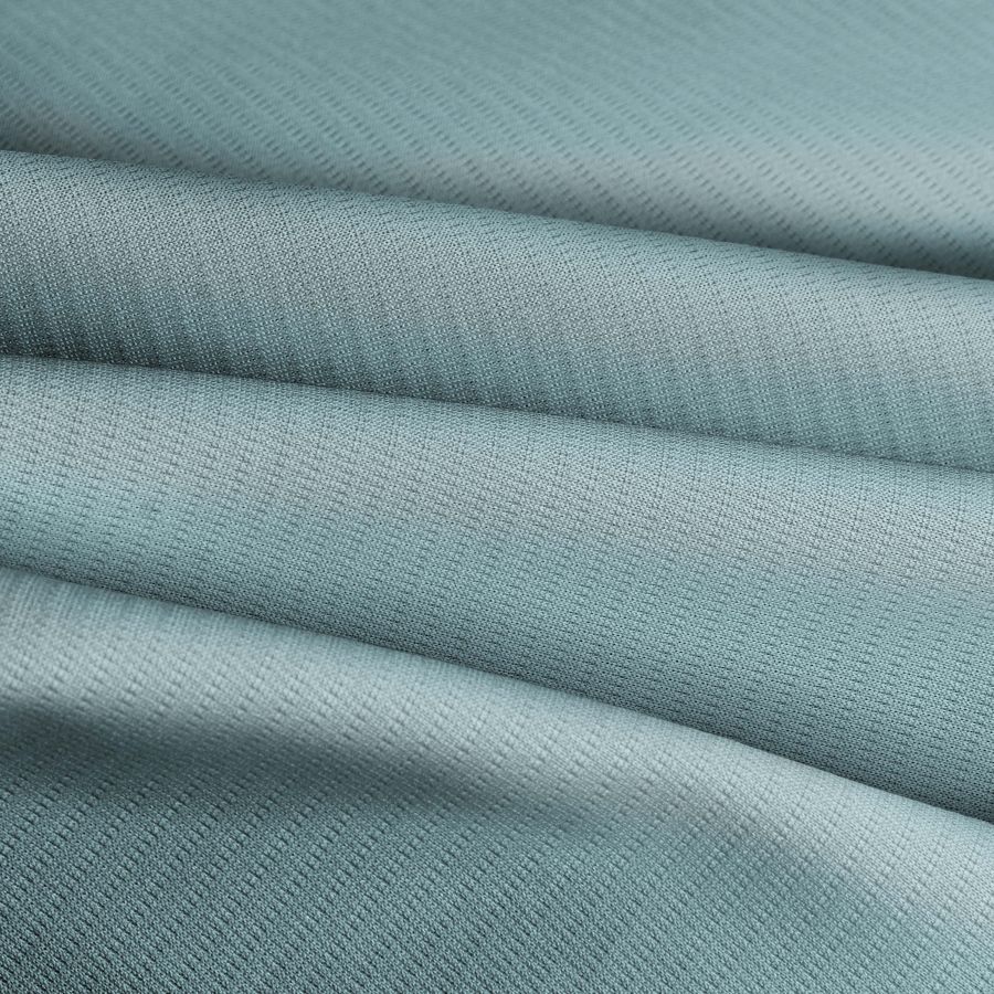 Este tejido técnico transpirable llamado Fresh tiene una composición de 100% poliéster, un gramaje de 135 gr/m2 y un ancho de 150 cm. El color liso impreso es un azul de niño, que se obtiene a través de la técnica de sublimación con una tinta cyan de 34, una tinta yellow de 12 y sin presencia de tintas magenta ni negra. El resultado es un color azul cielo con un estilo infantil.