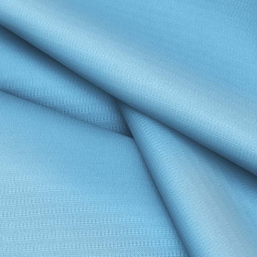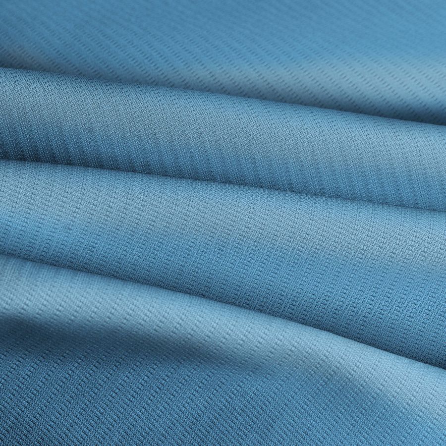 La tela base de este tejido es el Tejido Técnico Transpirable - Fresh, compuesto al 100% de poliéster con un gramaje de 135 gr/m2 y un ancho de 150 cm. El color liso impreso es el Azul Frita, con un CMYK de 53 11 0 0, lo que le otorga una tonalidad azul-violeta que combina perfectamente con tonos blancos y amarillos.