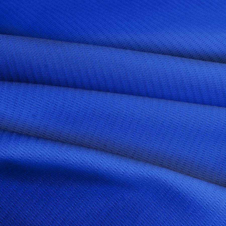 La tela base es el Tejido Técnico Transpirable - Fresh, compuesta en su totalidad por poliéster y con un gramaje de 135 gr/m2. En cuanto al color liso impreso, se trata de un Azul Iris con los siguientes valores de tinta: Cyan 95, Magenta 77, Yellow 0 y Black 0, con un CMYK de 95 77 0 0. Este color secundario presenta un aspecto fresco y vibrante que combina especialmente bien con tonalidades blancas, celestes y rosas.
