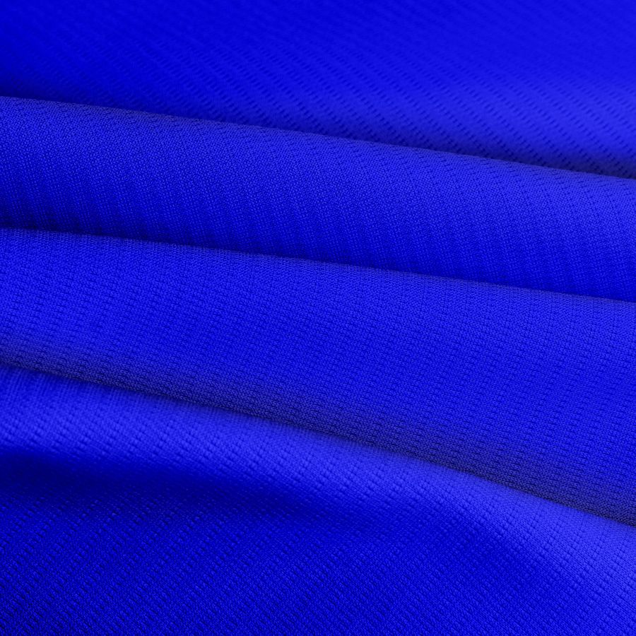 La tela base es el Tejido Técnico Transpirable - Fresh, compuesto por 100% Poliéster con un gramaje de 135 gr/m2 y un ancho de 150 cm. Su cuidado debe ser en temperatura máxima de 60ºC, no debe ser blanqueado, no admite lavado en seco, se plancha a temperatura fría y no se puede secar con secadora. La impresión del color liso en la tela es realizada por sublimación (poliéster), lo que significa que el color se impregna en la tela sin sobresalir en la superficie. El color Azul Mate impreso tiene unos valores de CMYK de 93 75 0 0, lo que lo hace un azul oscuro profundo y elegante. Este color combina muy bien con tonos pastel como rosa suave, verde menta y amarillo pálido.