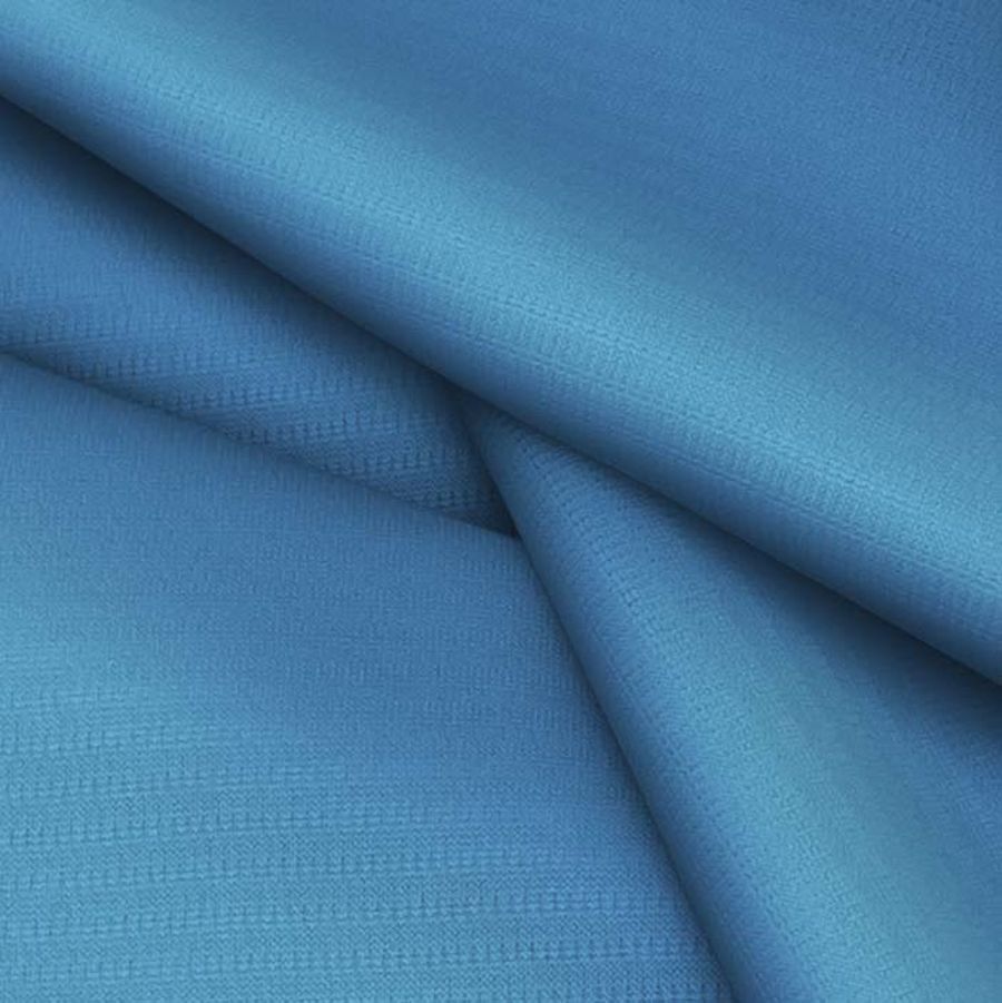 La tela base es el tejido técnico transpirable Fresh, con una composición de 100% poliéster, un gramaje de 135 gr/m2, un ancho de 150 cm y una temporada atemporal. El color liso impreso es Azul Pavo, con los siguientes valores CMYK: 77 46 14 2. Este color es un tono azul verdoso con un aire fresco y vibrante, que simboliza la libertad y la creatividad. Combina especialmente bien con tonos tierra y verdes, creando un efecto armónico y natural.