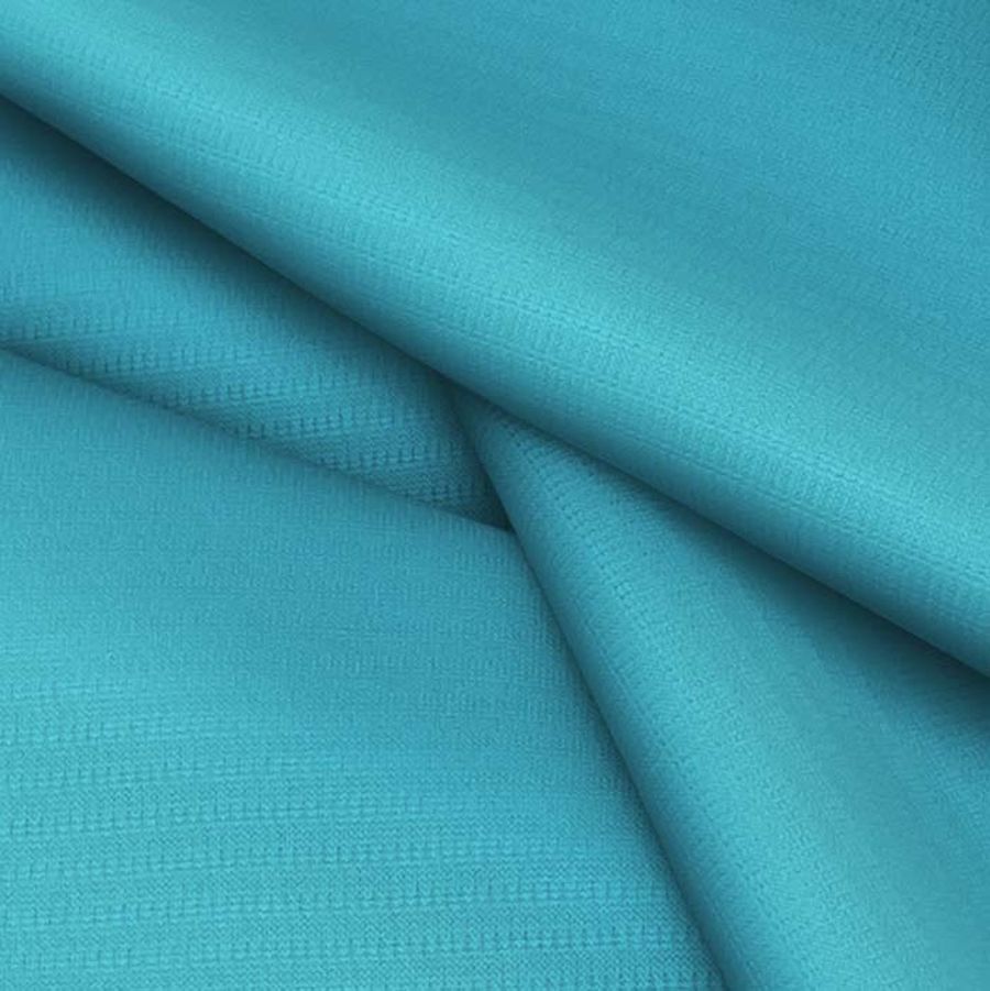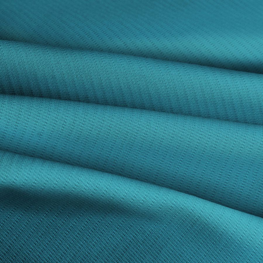 La tela base del tejido técnico transpirable - Fresh es 100% poliéster de gramaje 135gr/m2, con un ancho de 150cm. Su color liso impreso es un azul cian opaco con una tinta cyan de 71, magenta de 16, yellow de 22 y black de 1, lo que se refleja en un CMYK de 71 16 22 1. Este color es elegante y moderno, evocando tranquilidad y seguridad. Combina especialmente bien con blancos, negros y tonos grises oscuros.