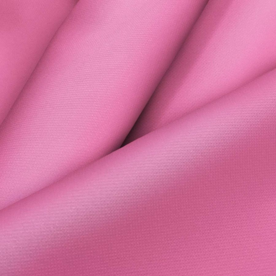 La Tela Cortavientos Impermeable - Target tiene un color liso impreso en Rosa Francés con un CMYK de 0 71 8 0. Este color secundario es un tono suave y delicado que combina bien con colores neutros como el blanco, el gris y el negro, así como con tonos pastel y marrones suaves. El tejido está impreso con el color liso a una sola cara por impresión digital textil, proporcionando una calidad de imagen brillante y realista. La tela base tiene un gramaje de 116 gr/m2 y está compuesta por un 100% de poliéster. Es resistente al agua y tiene un acabado impermeable, lo que la convierte en ideal para su uso en chaquetas, plumíferos, chubasqueros, entre otros. Su textura es delgada y suave al tacto.