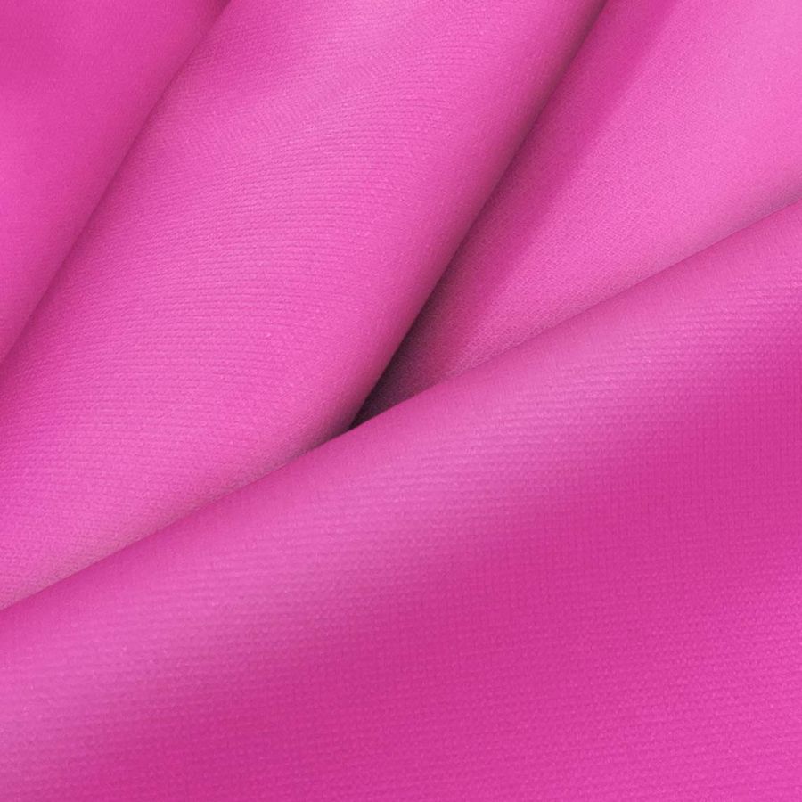 La Tela Cortavientos Impermeable - Target tiene un color liso impreso de Rosa Rosé Bonbon, con un CMYK de 0 83 0 0. Este tono rosa es vibrante y femenino, con una clara predominancia del color magenta. Combina magníficamente con grises suaves y neutros, y resulta ideal para prendas de vestir de moda o deportivas. Es importante tener en cuenta que la tela base está impresa con el color liso a una sola cara, mediante impresión digital textil.