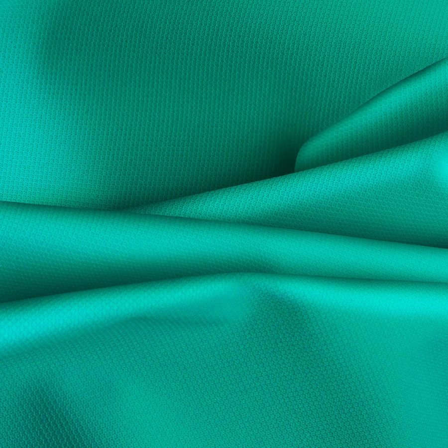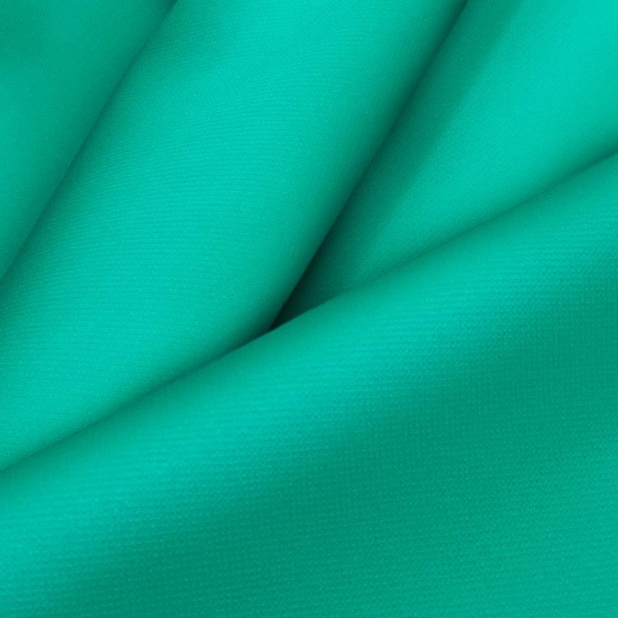 La tela base de esta prenda es el tejido técnico cortavientos impermeable Target, compuesto al 100% por poliéster, con un gramaje de 116 gr/m2 y un ancho de 145cm. El color liso impreso tiene un tono verde acuático, compuesto por una combinación de tintas de: Cyan (82), Magenta (16), Yellow (62) y Black (2) en CMYK. Este color resulta sumamente vibrante y juvenil, evocando a la frescura del océano en un día soleado. El tono verde acuático es fácilmente combinable con colores cálidos como amarillos, anaranjados y rojos, así como con tonos neutros como el gris, blanco o negro.