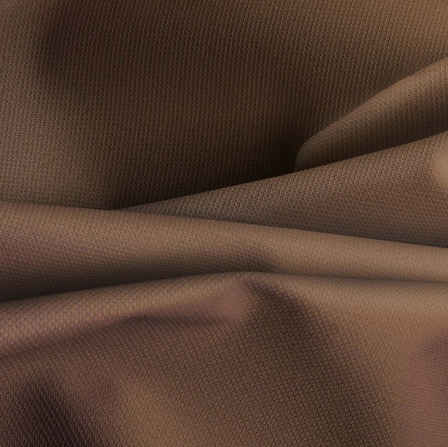 La Tela Cortavientos Impermeable - Target es un tejido técnico compuesto al 100% de poliéster y tiene un gramaje de 116 gr/m2 y un ancho de 145 cm. Es de color marrón nogal, con una tinta cyan de 43, magenta de 58, yellow de 73 y black de 56, dando un tono terroso y elegante. Aporta un tacto suave y delicado al contacto con la piel, además de ser impermeable y resistente al viento gracias a su acabado. El color secundario es un tono marrón oscuro con matices de rojo, que armoniza bien con tonalidades tierra y ocres.