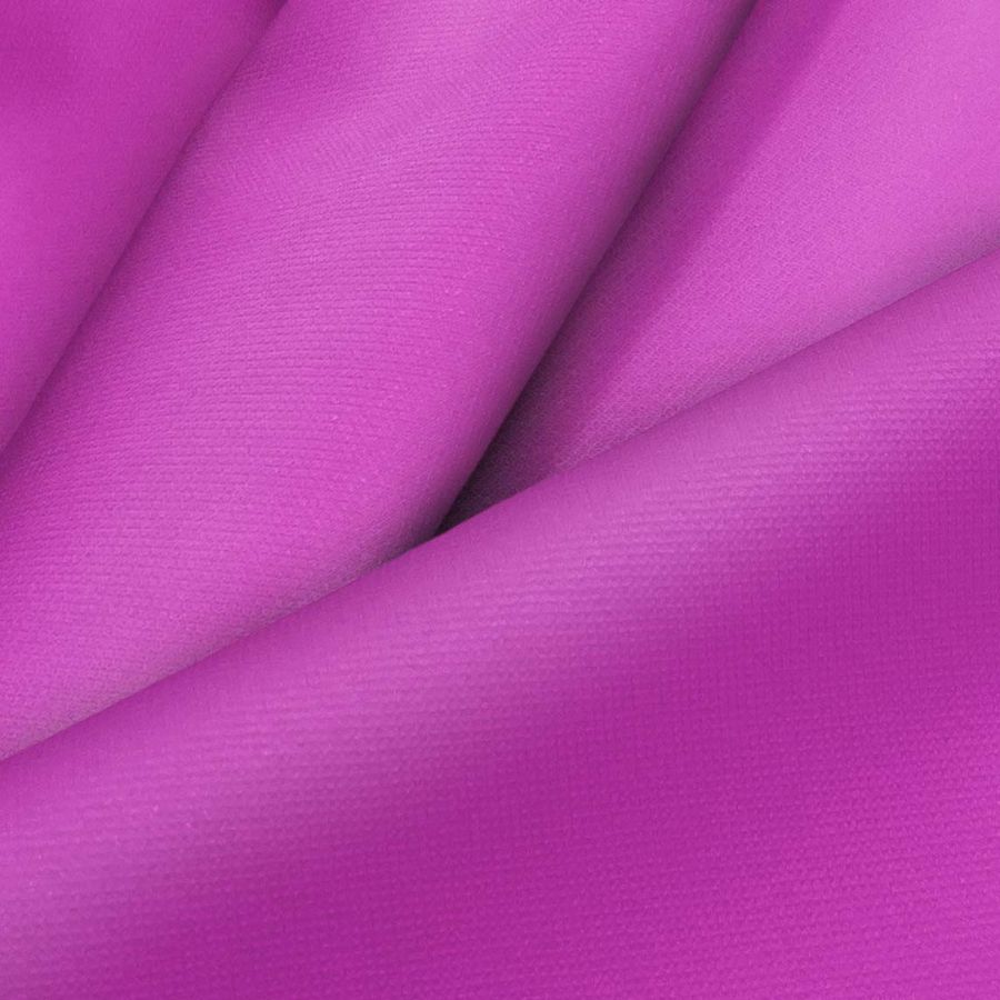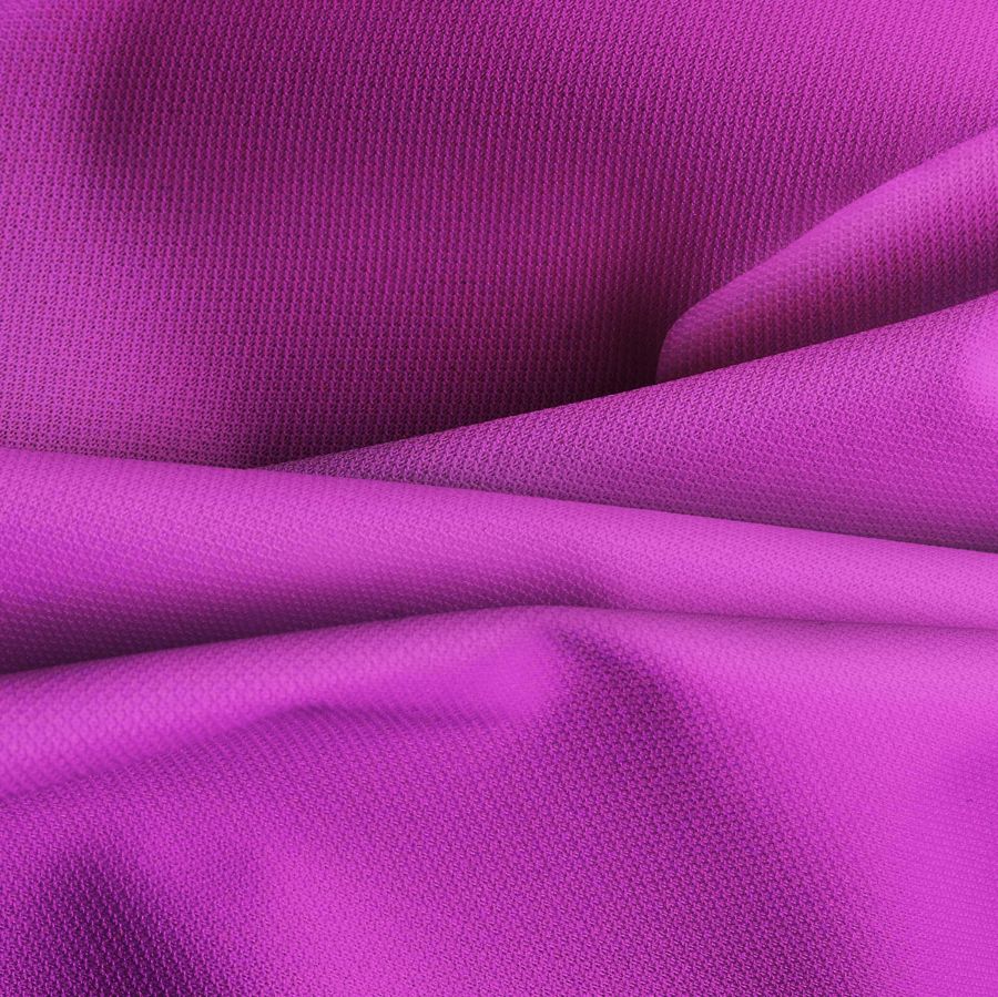La tela base de este tejido técnico cortavientos e impermeable, de composición 100% poliéster, tiene un gramaje de 116 gr/m2 y un ancho de 145 cm. Su color liso impreso es morado bizantino, con una combinación de tintas CYAN de 39, MAGENTA de 85, YELLOW de 0 y BLACK de 0, lo que resulta en un CMYK de 39 85 0 0. Este color secundario presenta una tonalidad oscura y elegante que simboliza la singularidad y la sofisticación. Combina especialmente bien con tonos fríos como el gris, el blanco y el azul claro.