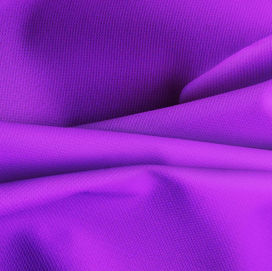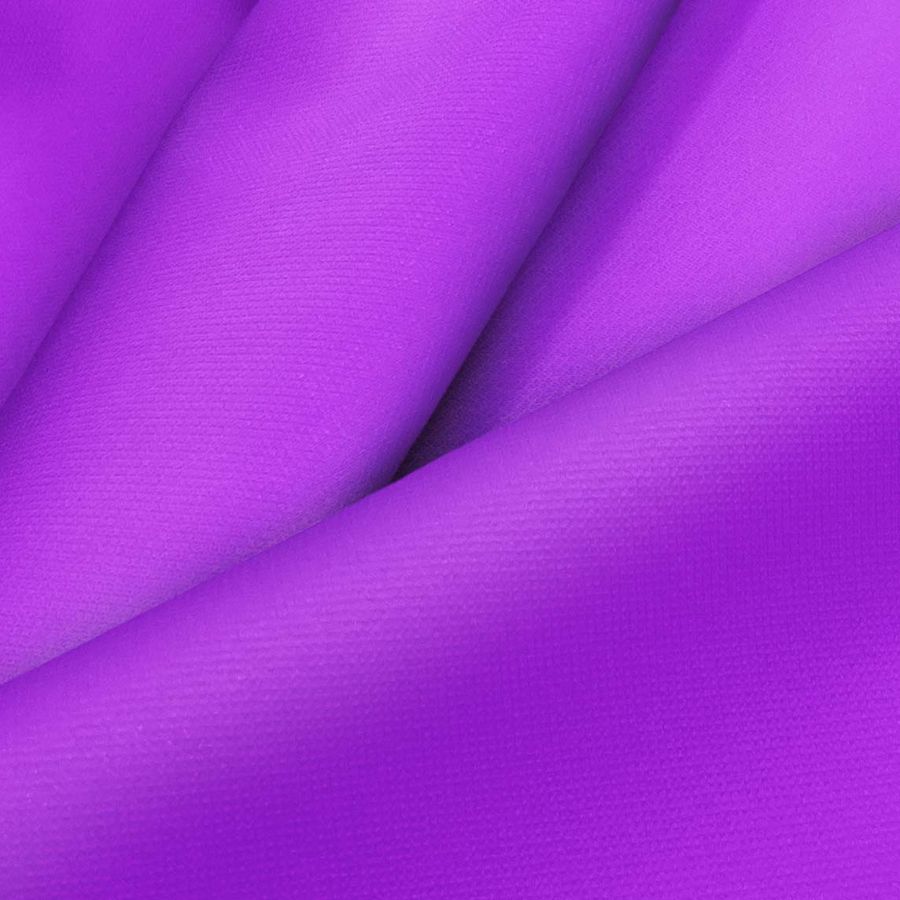La Tela Cortavientos Impermeable - Target de tejido técnico 100% poliéster tiene un gramaje de 116 gr/m2 y un ancho de 145 cm. El color liso impreso en esta tela es un vibrante morado-púrpura X11, con una combinación de tintas de cian, magenta y negro. El color es muy llamativo y se puede combinar muy bien con tonos oscuros y grises.