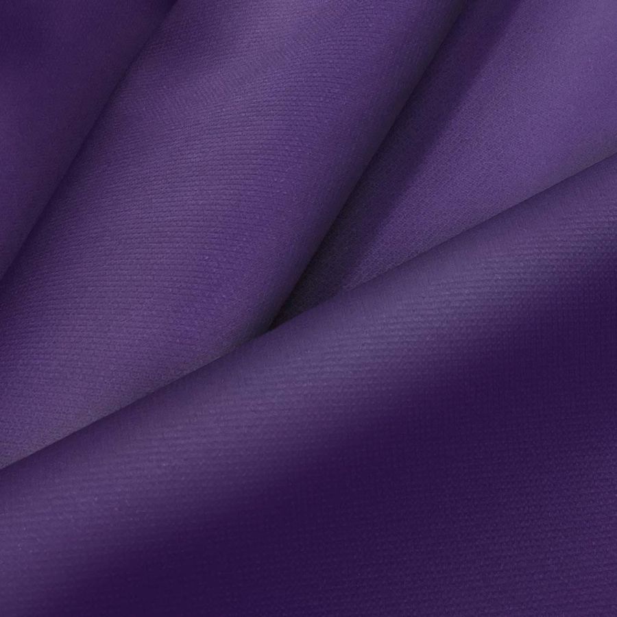La tela base es la Tela Cortavientos Impermeable - Target, un tejido técnico de 100% poliéster con un gramaje de 116 gr/m2 y un ancho de tela de 145 cm. El color liso impreso es un Morado-Violeta Ruso con un CMYK de 94 100 34 36, lo que indica una alta presencia de los tonos cian y magenta, un tono amarillo moderado y un tono negro bajo. Este color secundario es una mezcla equilibrada de azul y rojo, lo que transmite un misterioso aire de profundidad y sofisticación. Combinado con otros colores como el blanco, el verde oliva y el rosa oscuro, brinda contraste y armonía en las prendas.