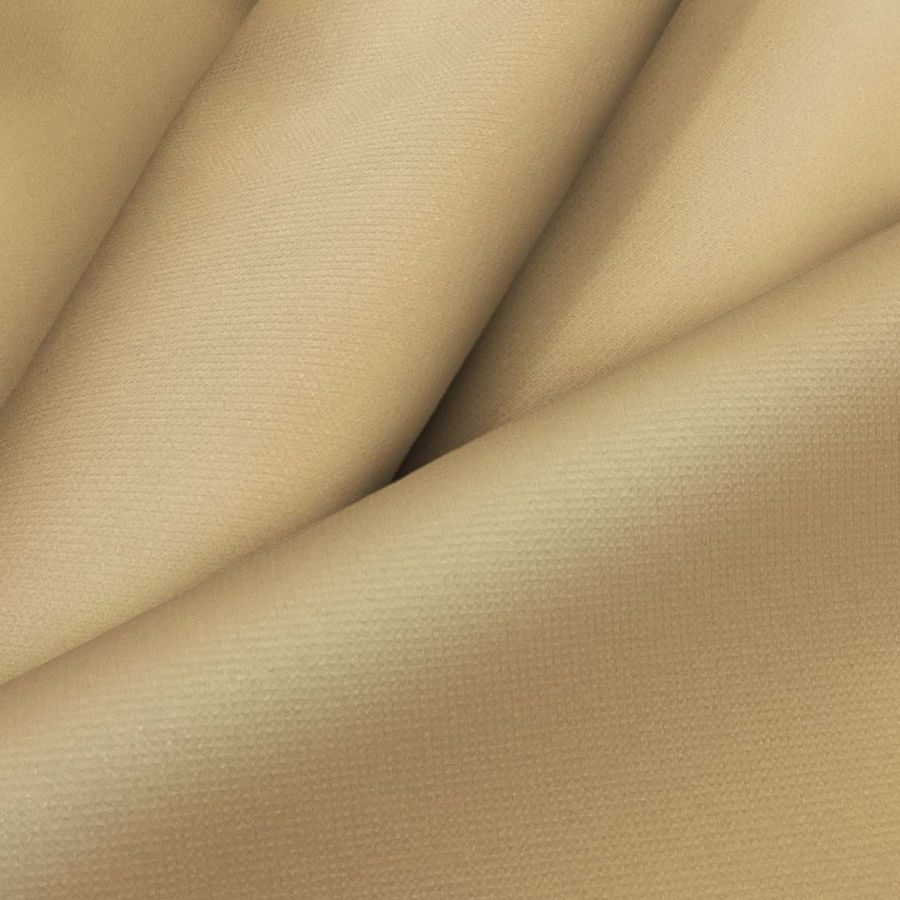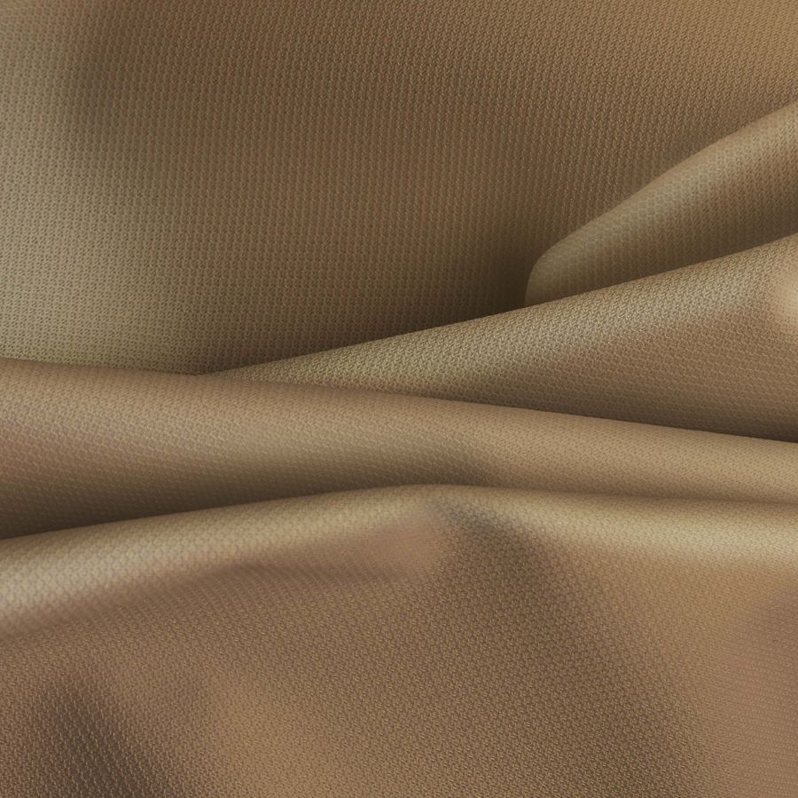 La tela base, Tela Cortavientos Impermeable - Target, está compuesta por un 100% de poliéster, con un gramaje de 116 gr/m2 y una anchura de 145 cm. Su color liso impreso es una mezcla de naranja y camello, reflejado en el CMYK de 22 37 60 10. Este color secundario sugiere una sensación cálida y acogedora, muy apropiada para prendas de invierno en entornos naturales. Además, combina perfectamente con otros tonos tierra y oscuros, como marrón, gris y negro. La tela base está impresa con el color liso a una sola cara mediante impresión digital textil.
