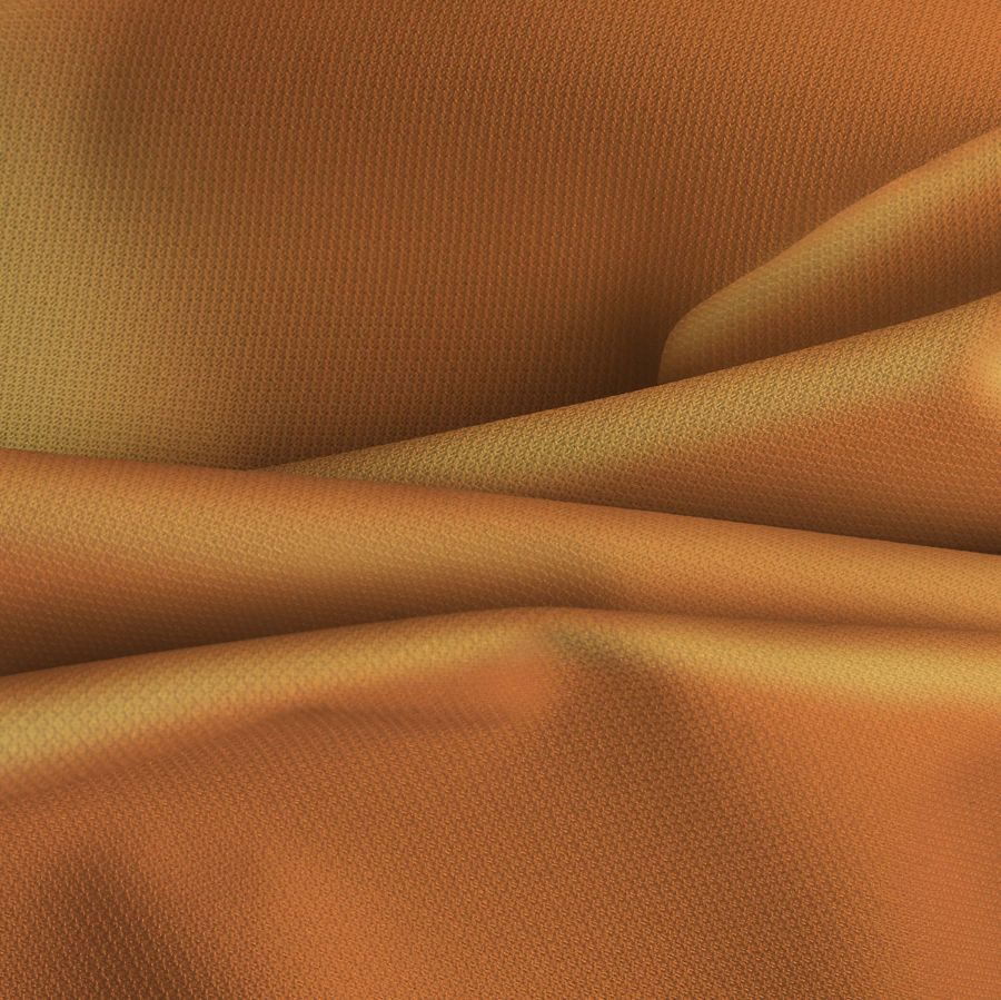 Las características de este tejido son su acabado impermeable, lo que lo hace ideal para prendas y accesorios deportivos, así como su textura delgada que lo hace flexible y fácil de manejar. La tela es resistente a las arrugas y tiene una excelente resistencia a la abrasión. En cuanto al color liso impreso, su intensidad y vibrante tono naranja lo hacen perfecto para diseños deportivos y de moda llamativos y energéticos.